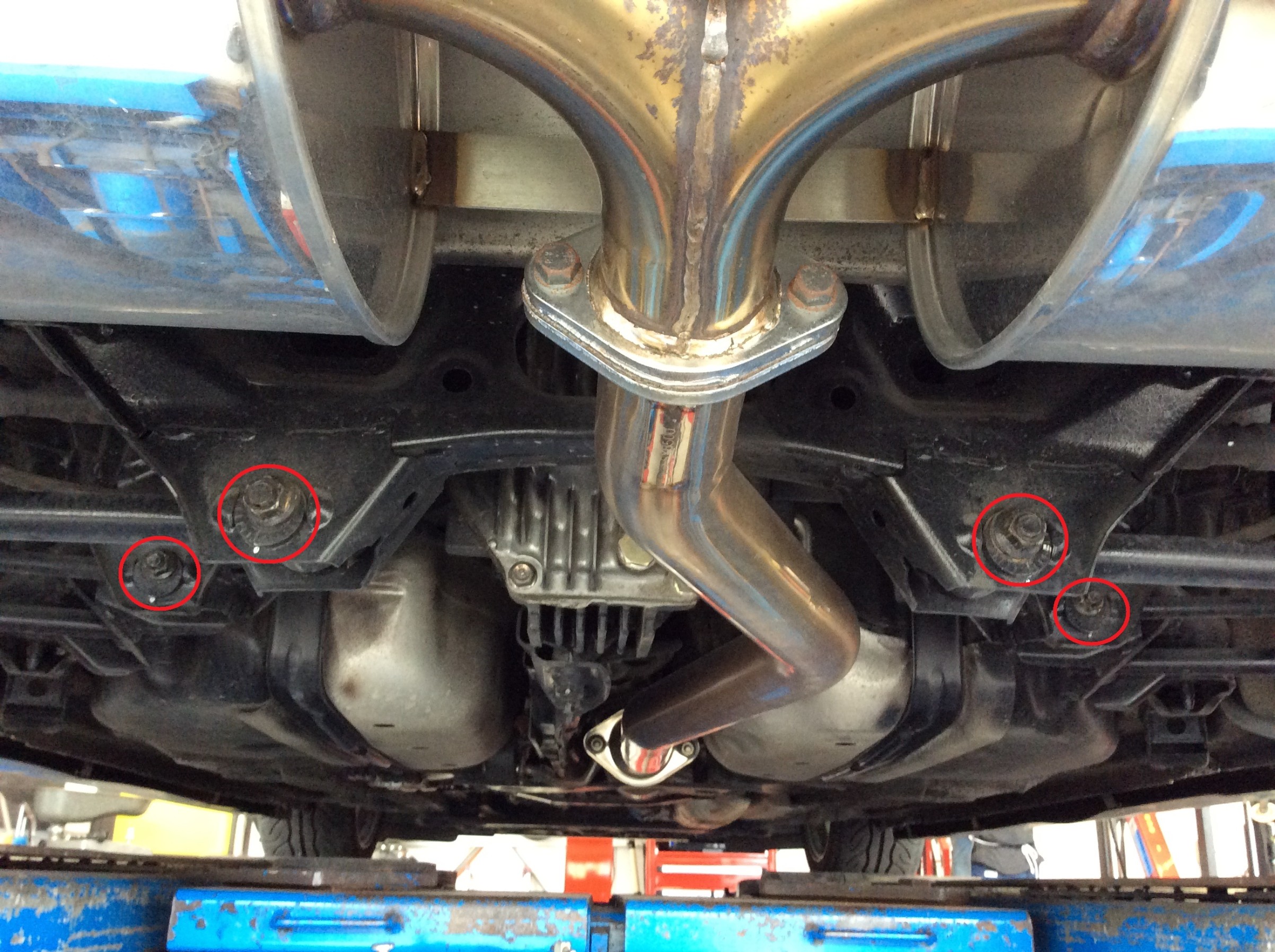 こちらリヤですがRX-8は調整箇所(赤丸部分が調整場所になります)が多い車種で、しっかりと合わせられるのが良いです。