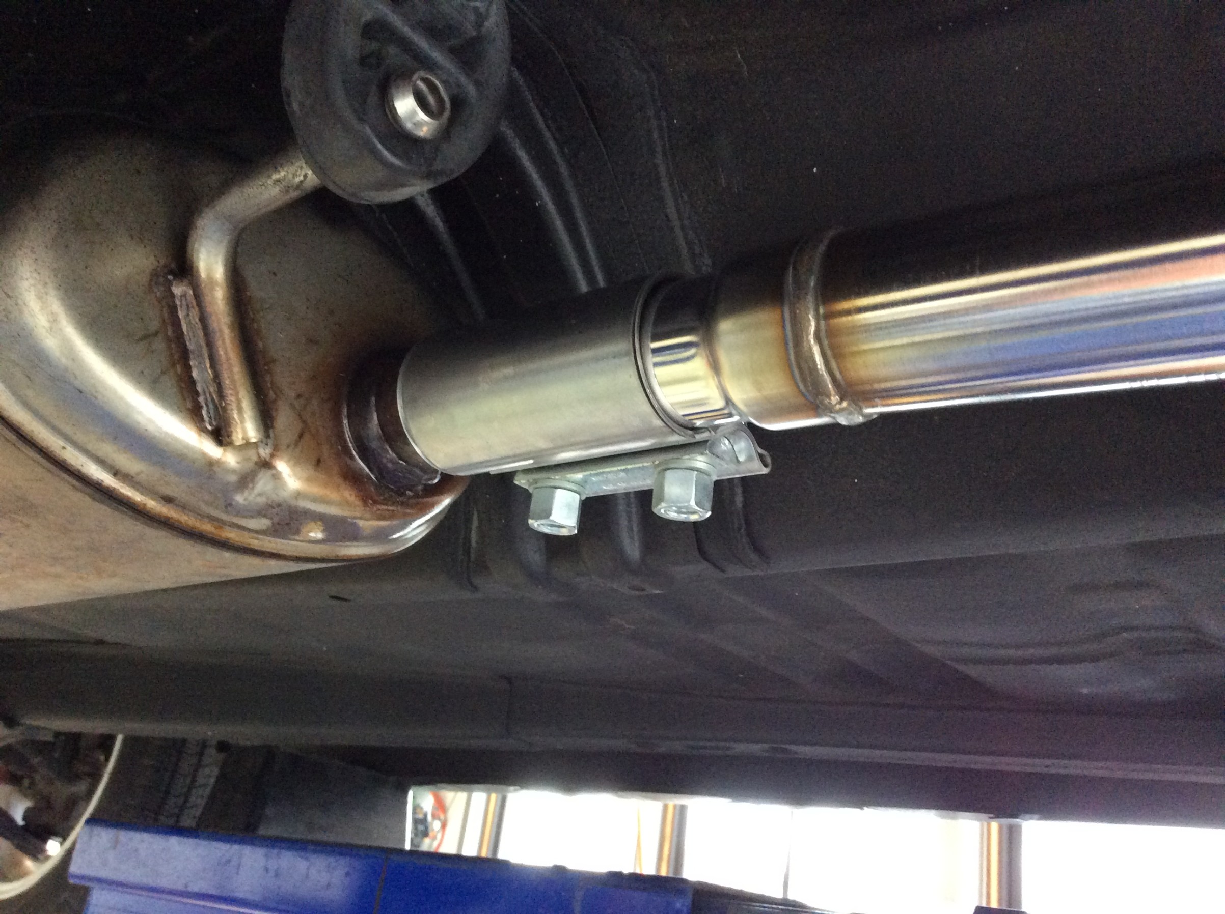 純正マフラーをカットして取り付けるので、HKSマフラーの差し込み部分はこんな形状しています。
