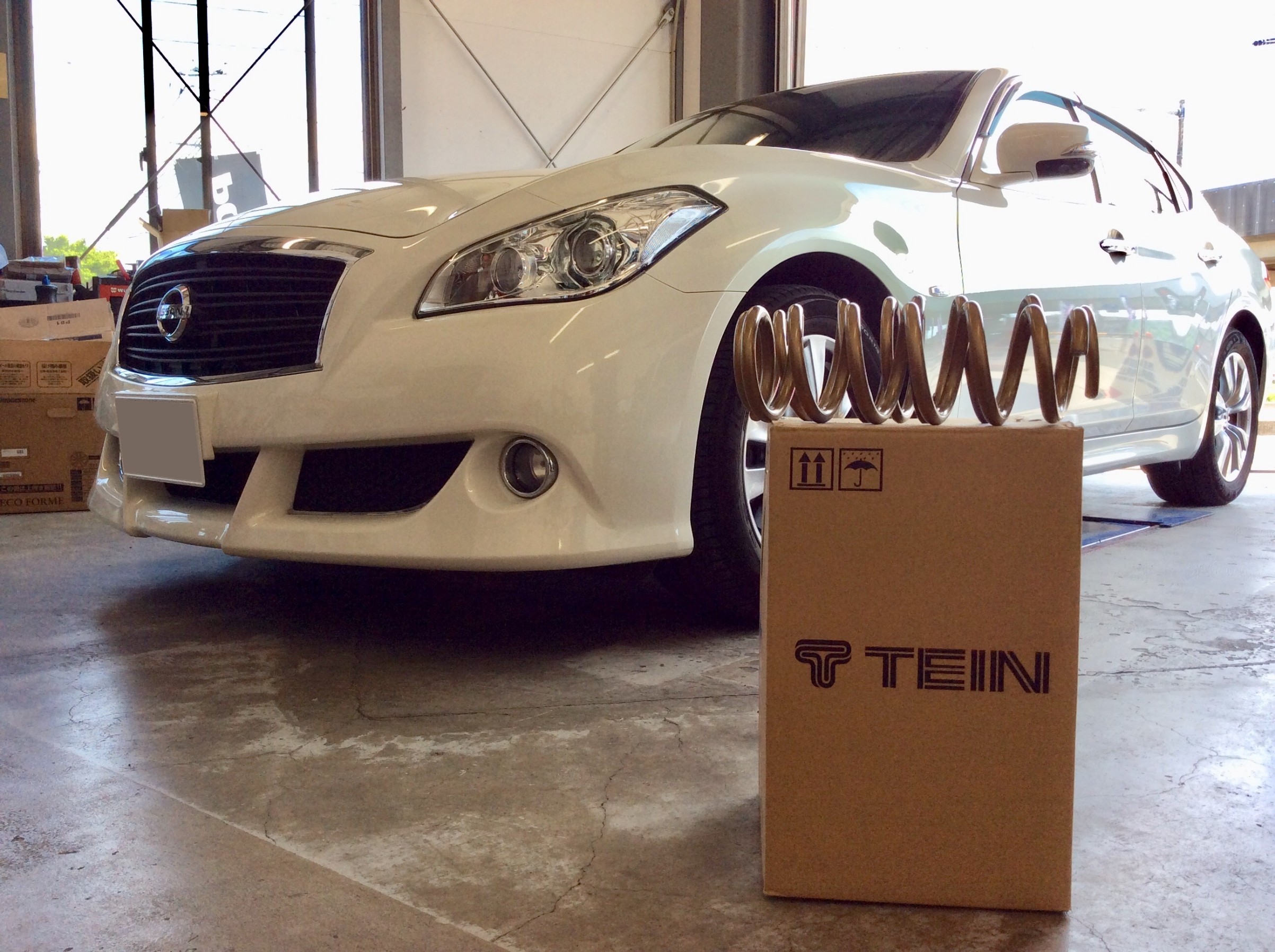 今回は、TEIN製ダウンスプリングのHIGH.TECHをフーガに取り付けます!
