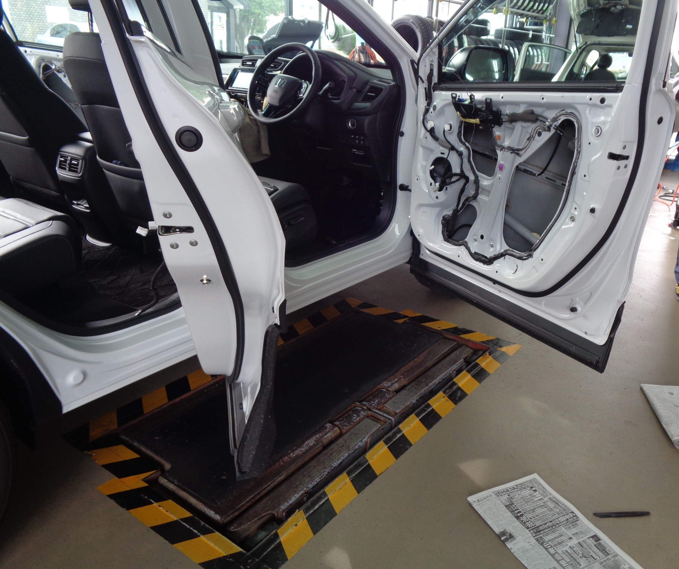 CR-Vはドアの内張を外してデトニングの準備、