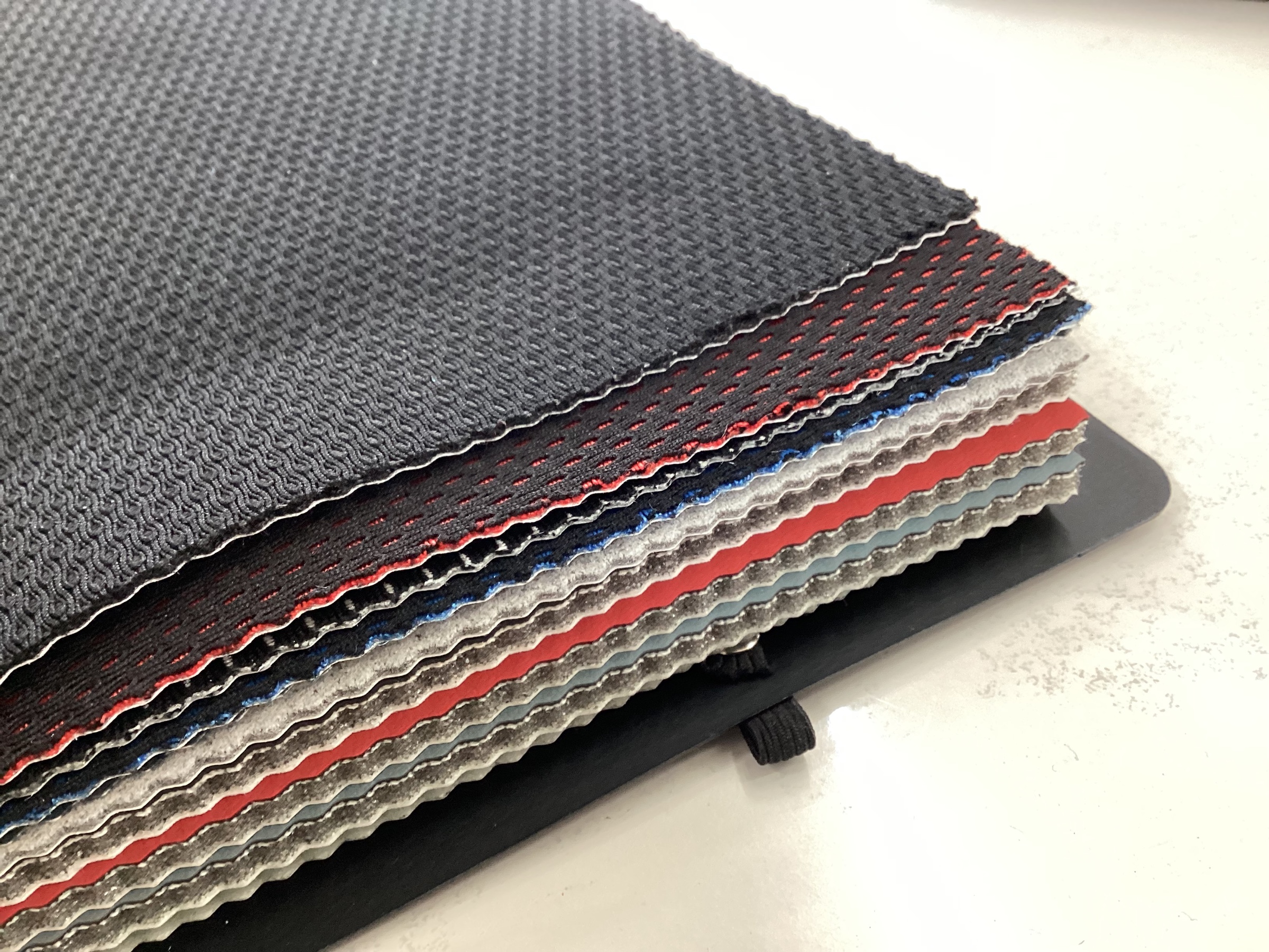 ラインナップカラーの実物の生地もあるので