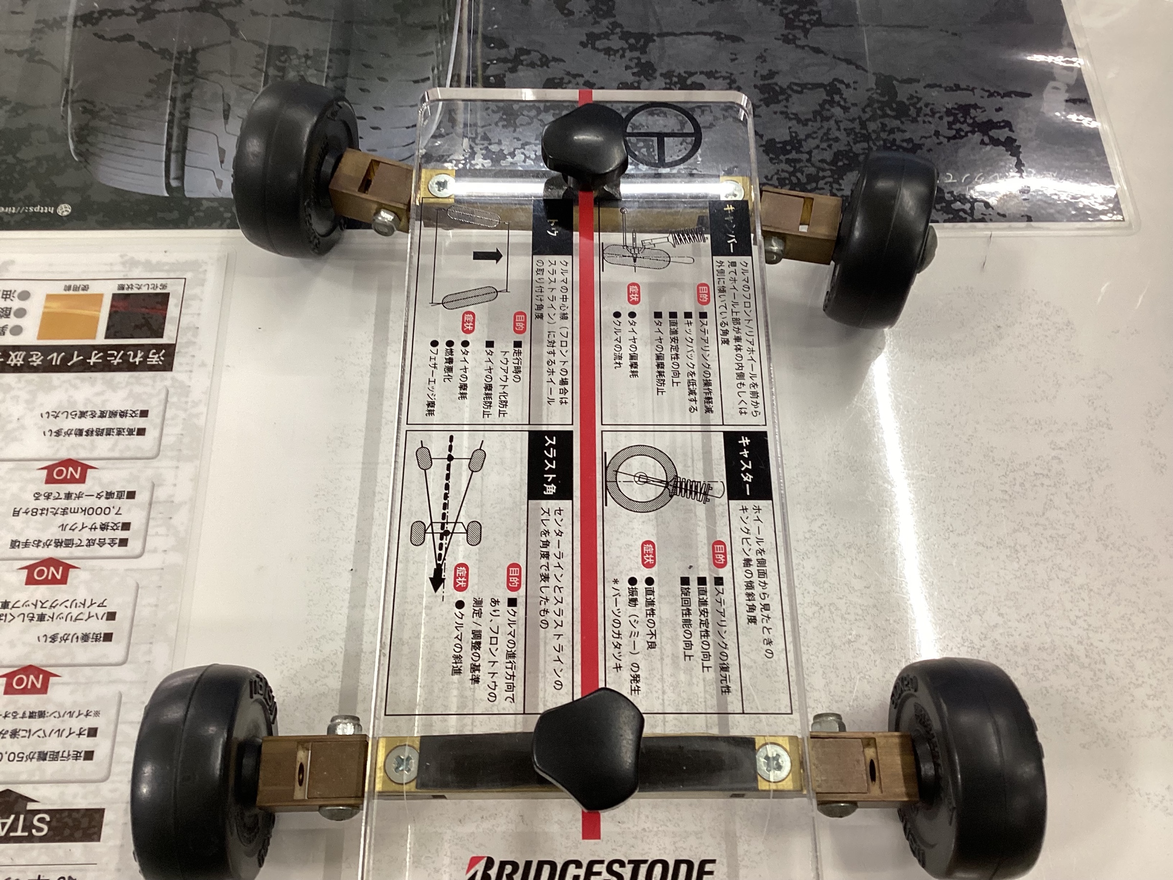 アライメント調整で、ズレたタイヤの向きを直します。