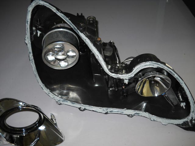 バルカンを移植するヘッドライトはもともとプロジェクター&イカリング(CCFL)付きの社外品なんですが、イカリングが点灯不良のため、LEDリングに交換するついでにプロジェクターをバルカンに変えちゃえー!!