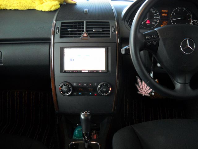 赤のベンツAクラスはナビの取り付けです。