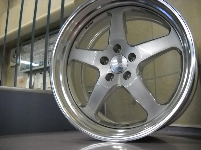 写真は、ホイールメーカー WORK さんが持ってきてくれた新作サンプルの