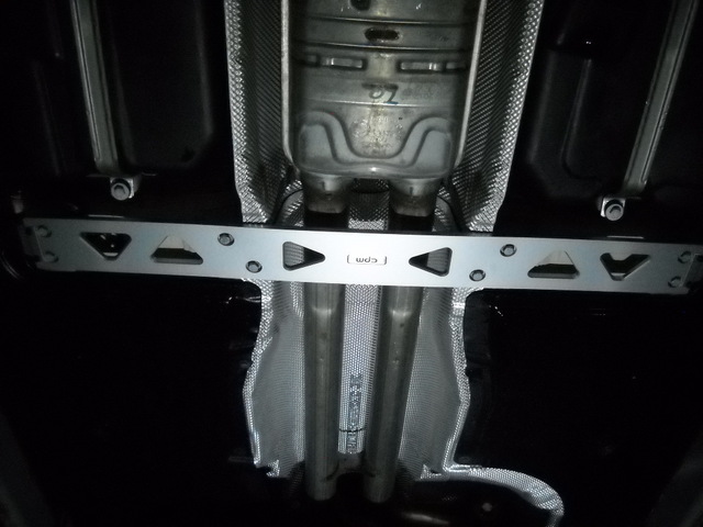 ご存知の方も多いと思いますが、ボディシャーシのセンターには、マフラーやリアタイヤを駆動させる為のプロペラシャフトを通す為に、側溝をひっくり返したようなミゾがあります。そのミゾをつなぐ純正の補強用プレートが付いています。