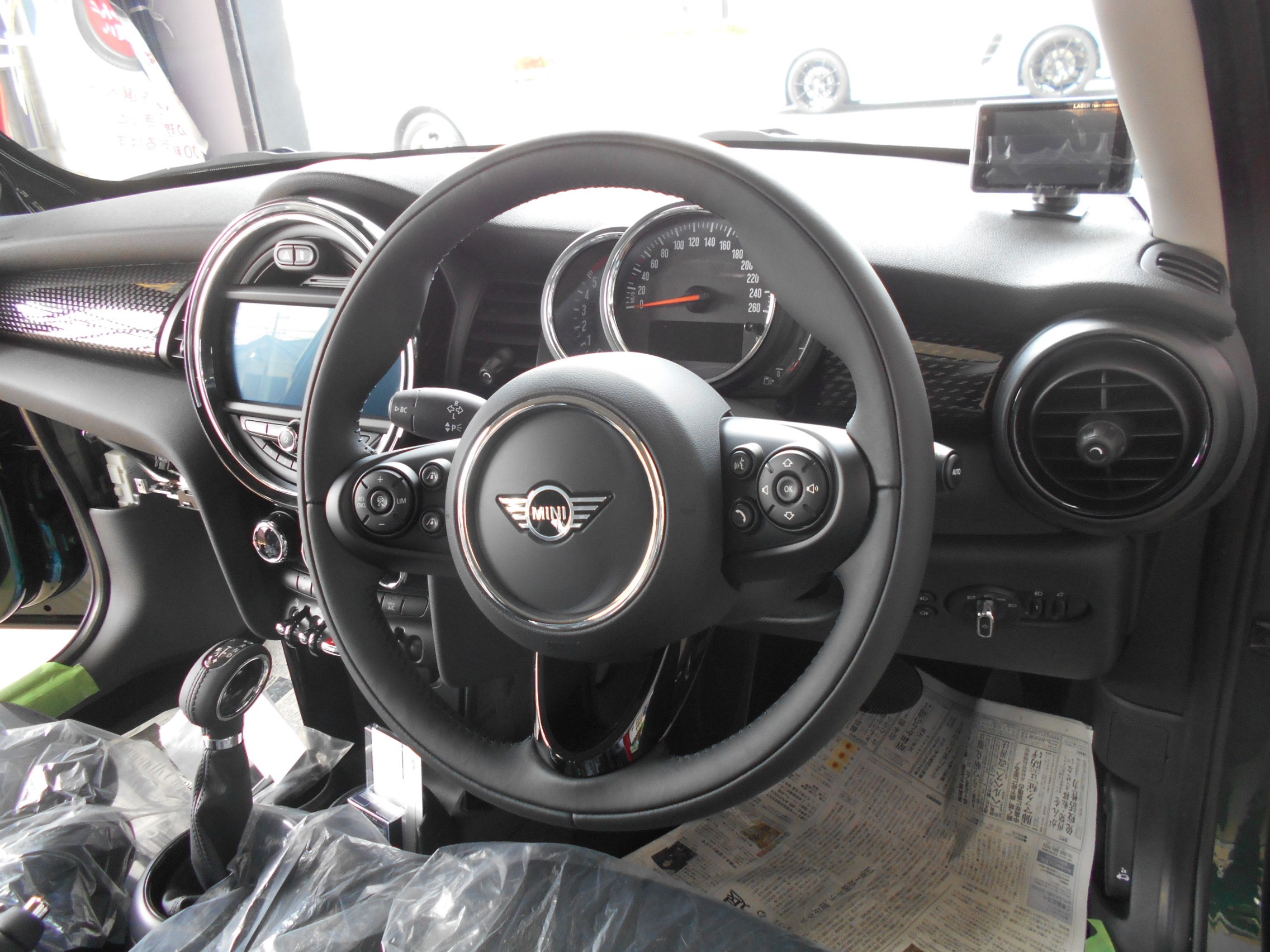 完成写真は撮れていません^^;、お次はBMW ミニ F55に、当店人気のブレックス前後ドラレコ(BCC510&BCC520)とユピテル最新レーダー Z100Lの取付です。