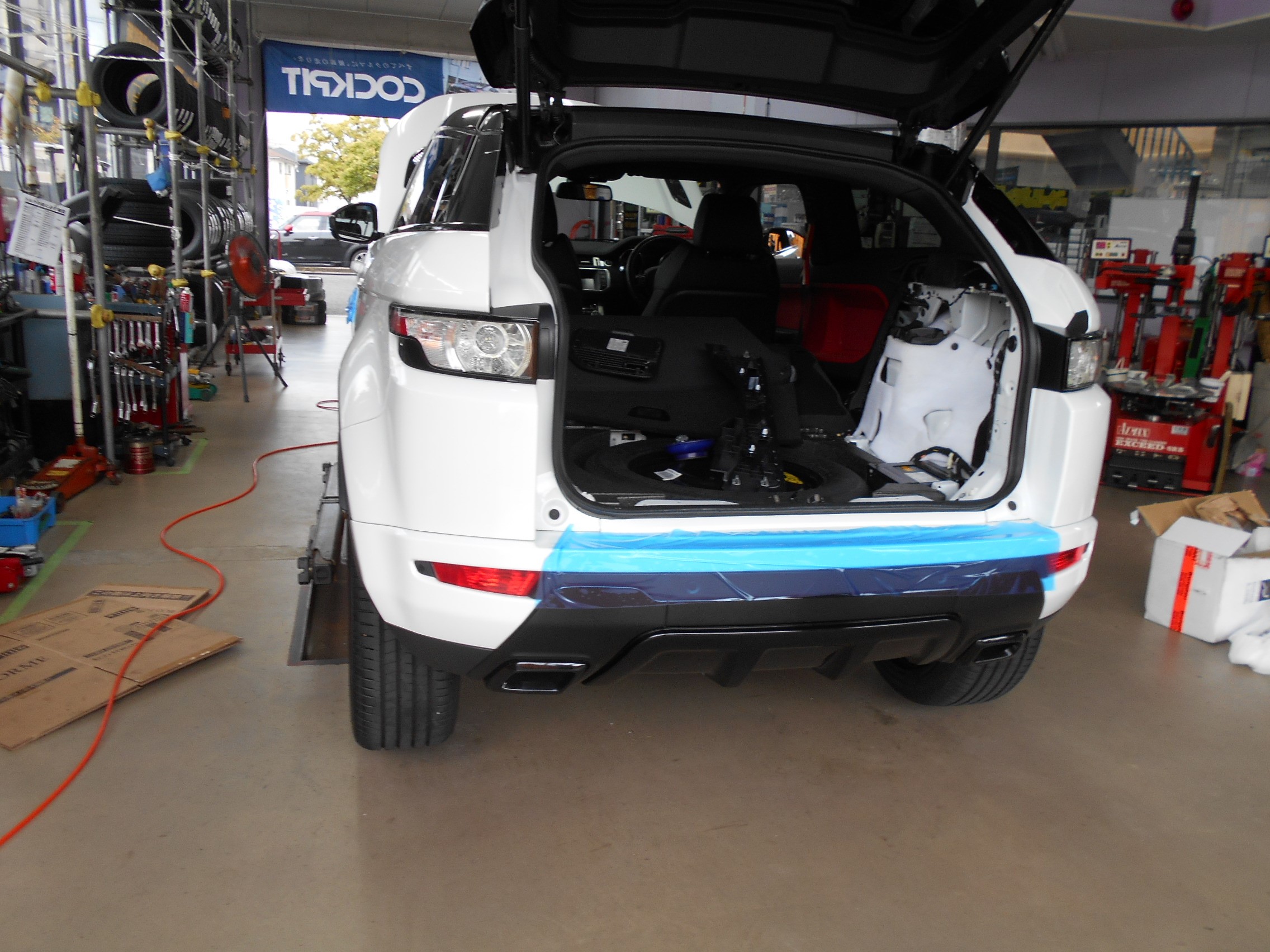 そんなPITには、ランドローバー イヴォークが入庫。何やら色々作業していました。完成は明日かな!