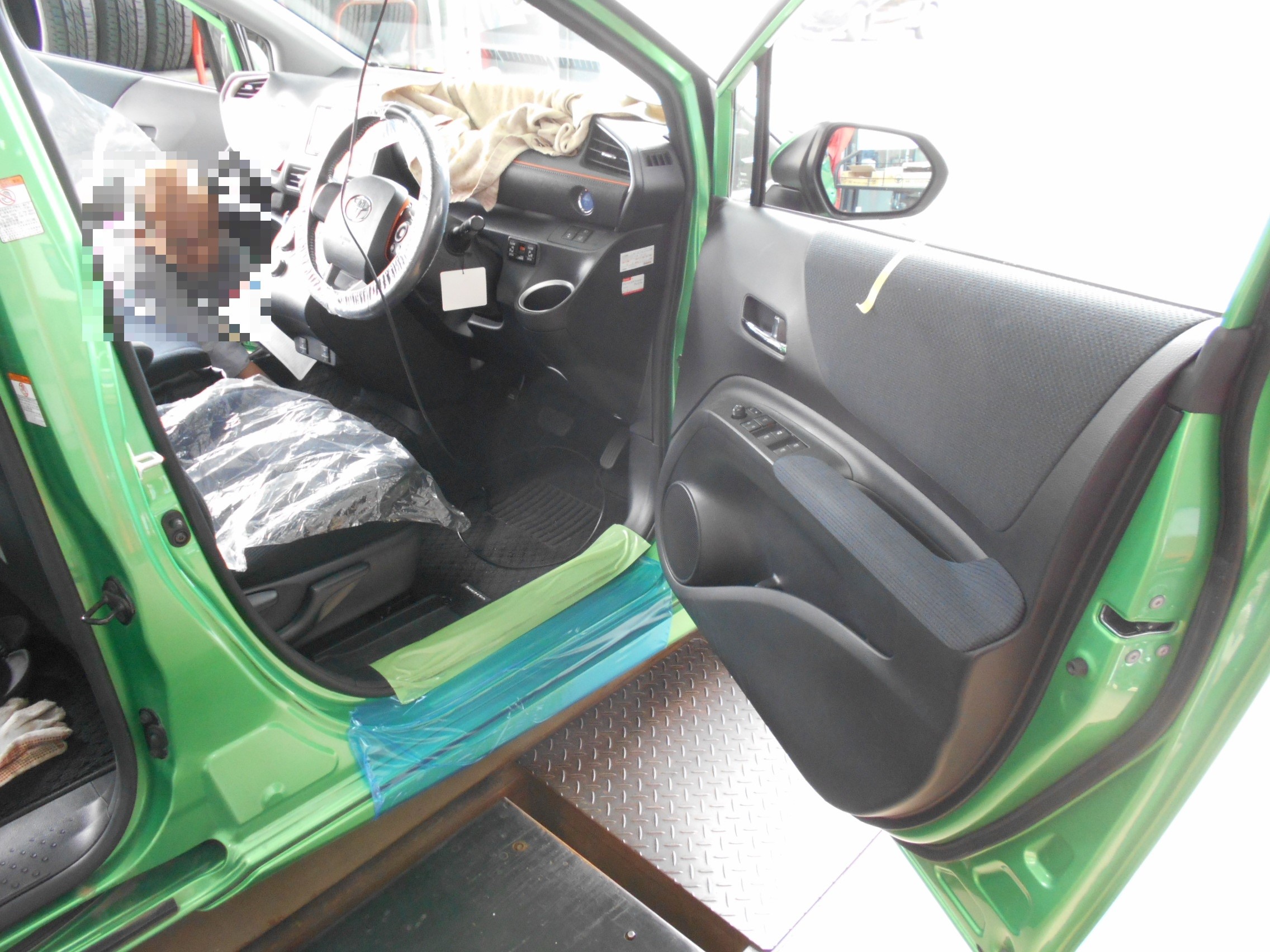 養生テープ貼りが終わってからの作業中です。