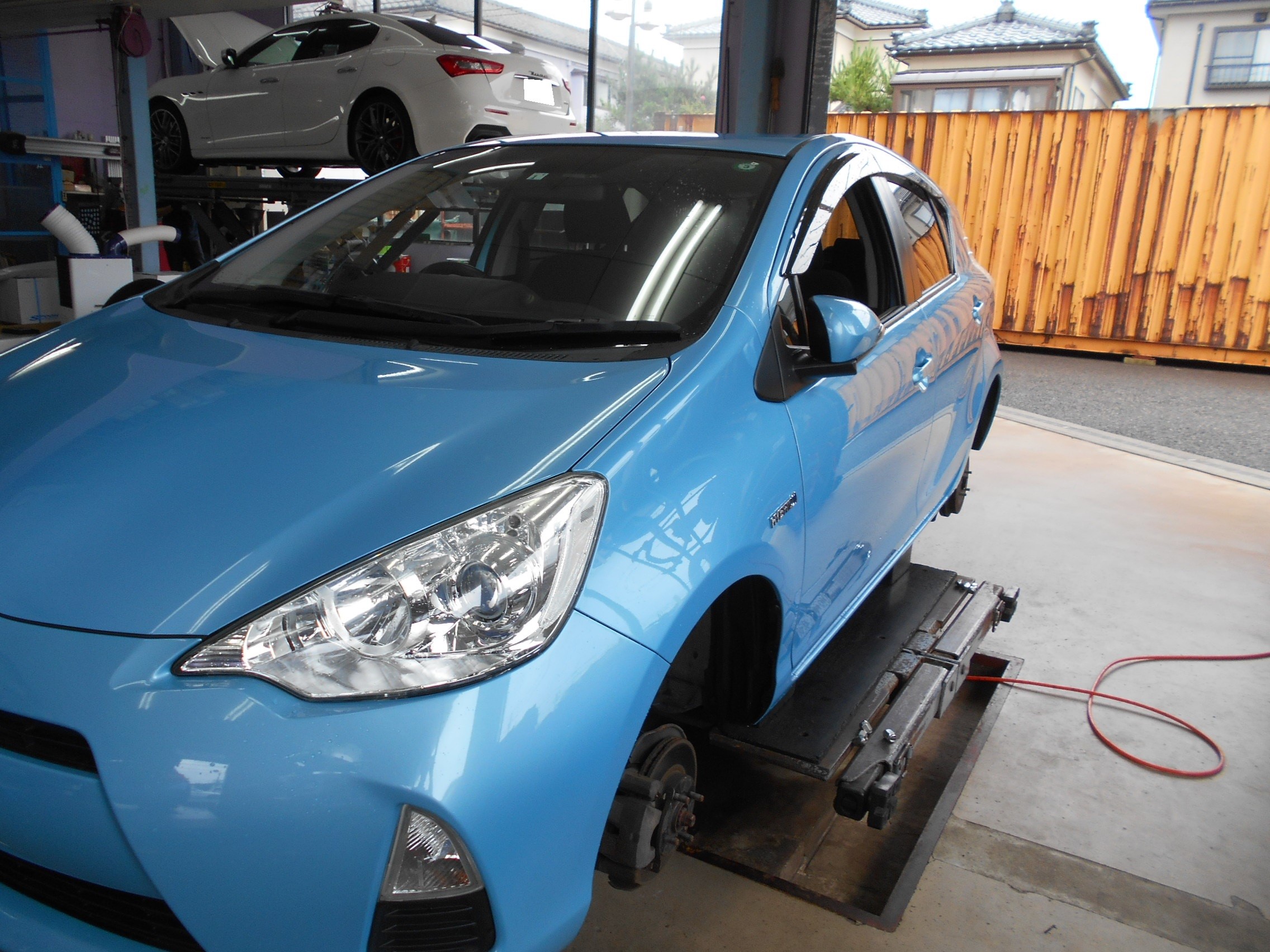 同時進行でトヨタ アクアのタイヤ交換。