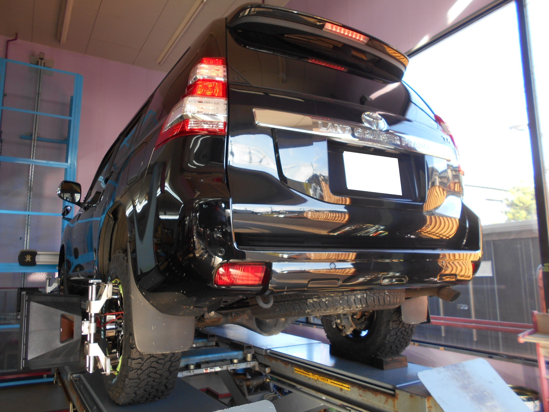 足回りリフトアップ後のトヨタ ランクルプラドの作業。