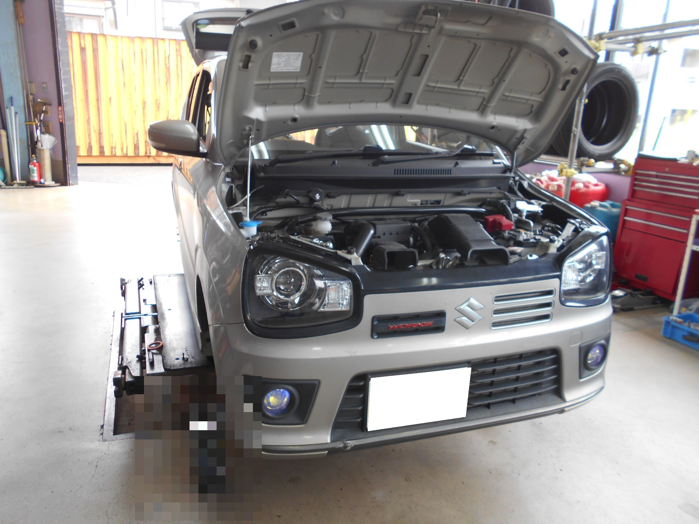 アルトワークスにクスコさんの車高調取付です。