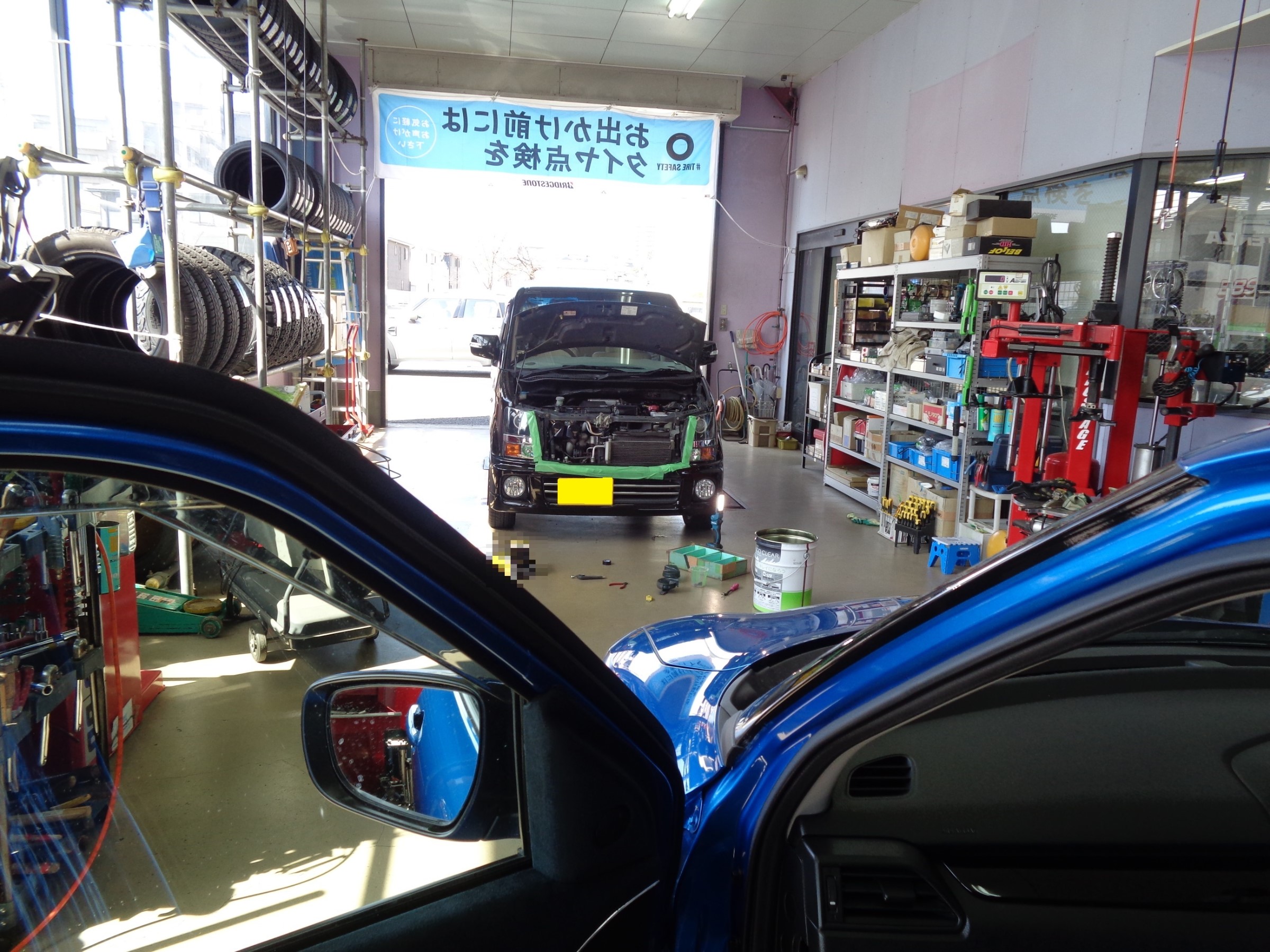 作業上ボンネットやドアをオープンしている事が多く、