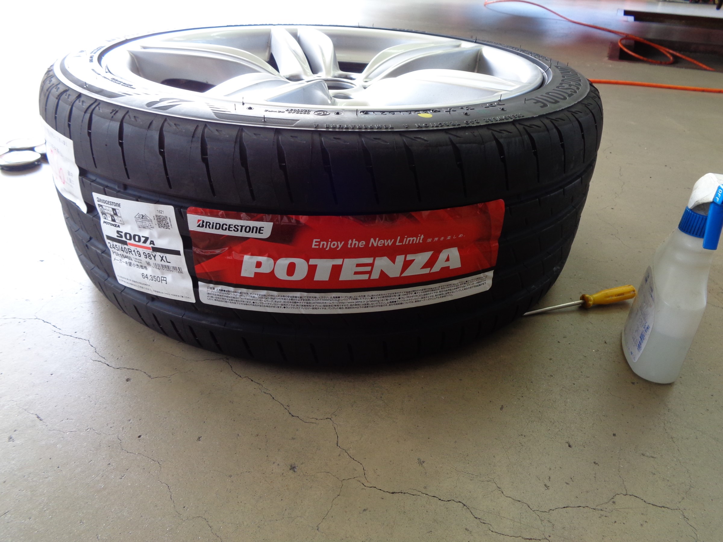 少し純正タイヤへの不満もありタイヤ交換で入庫↓