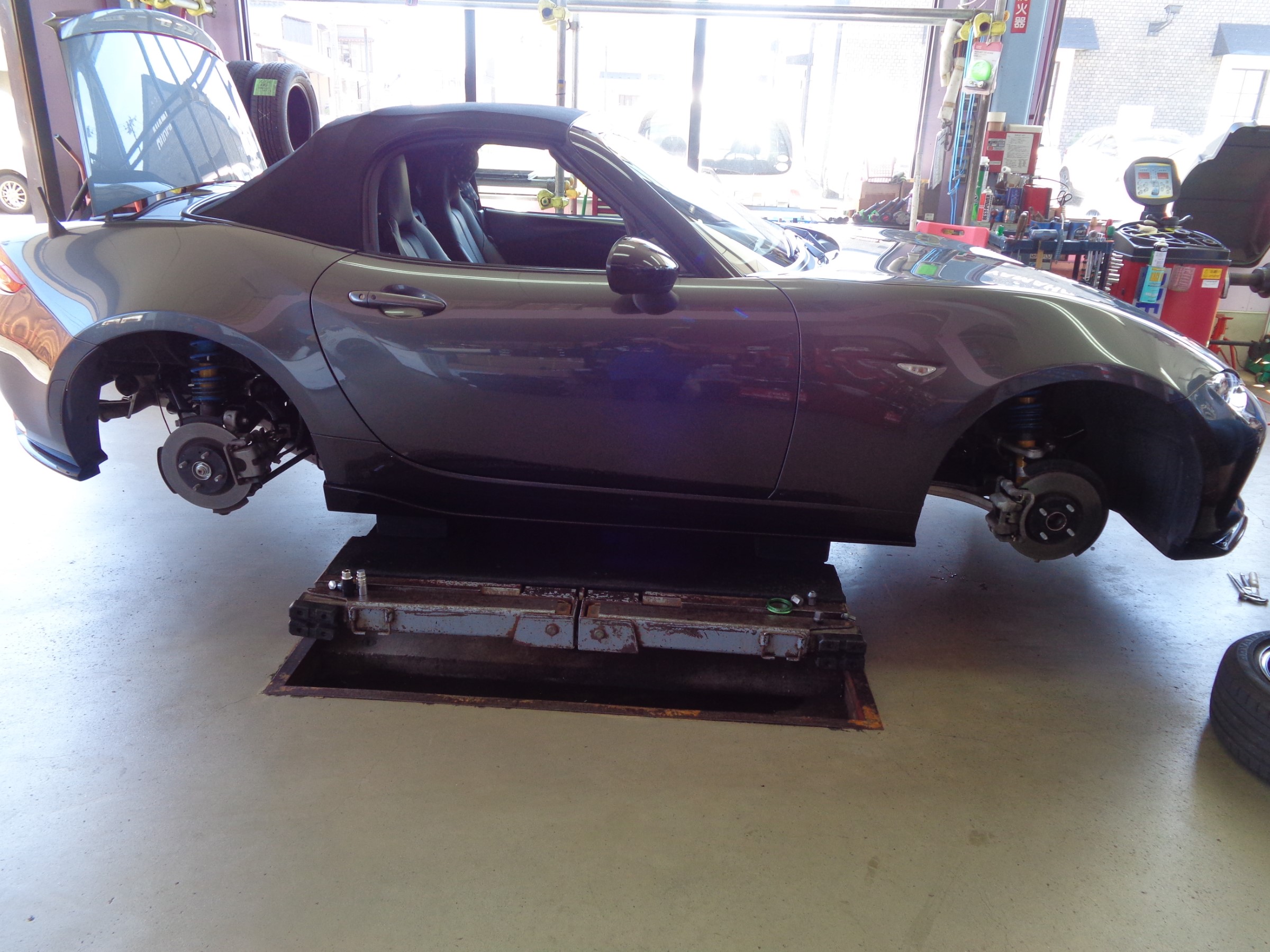 Hさまのマツダ ロードスターは、タイヤ交換で入庫。