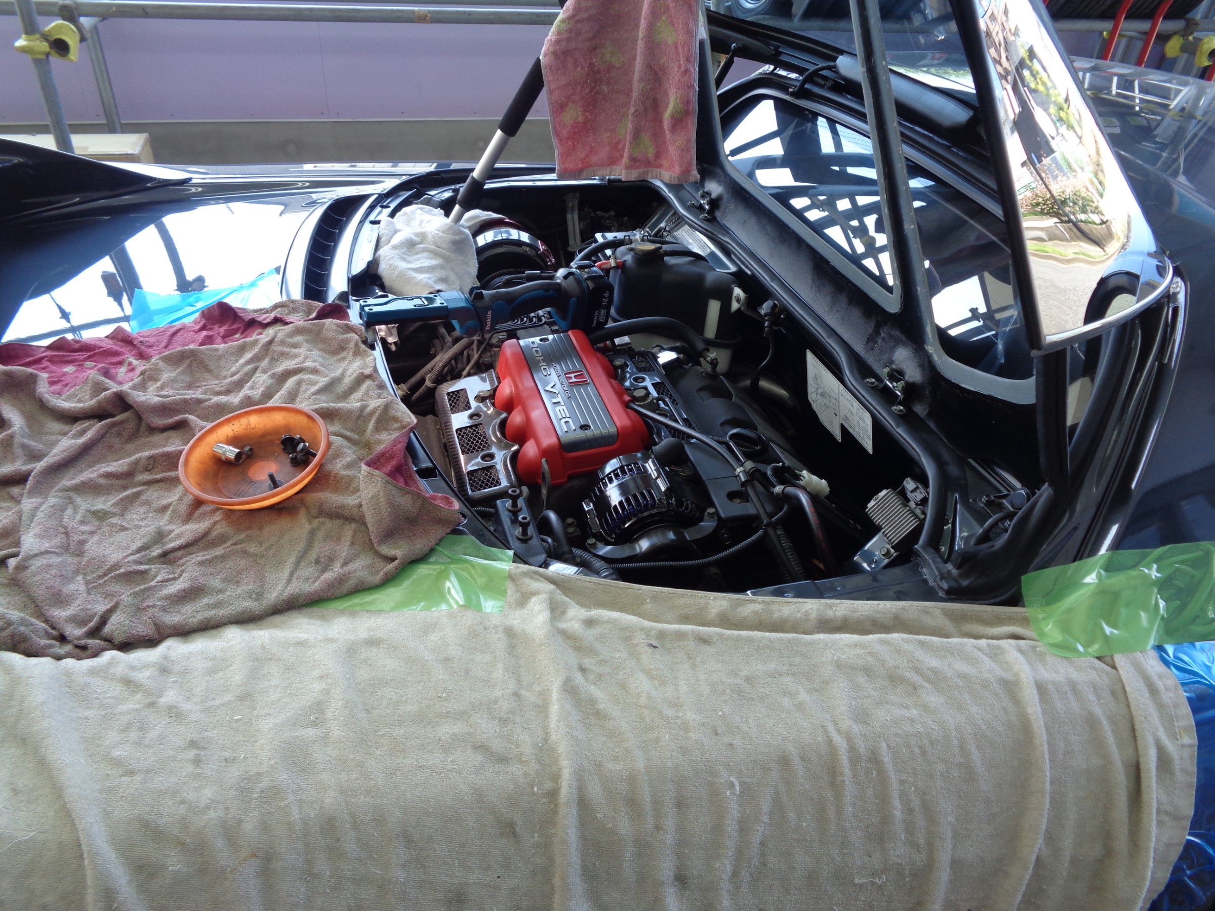 カバーを上げて作業開始↓