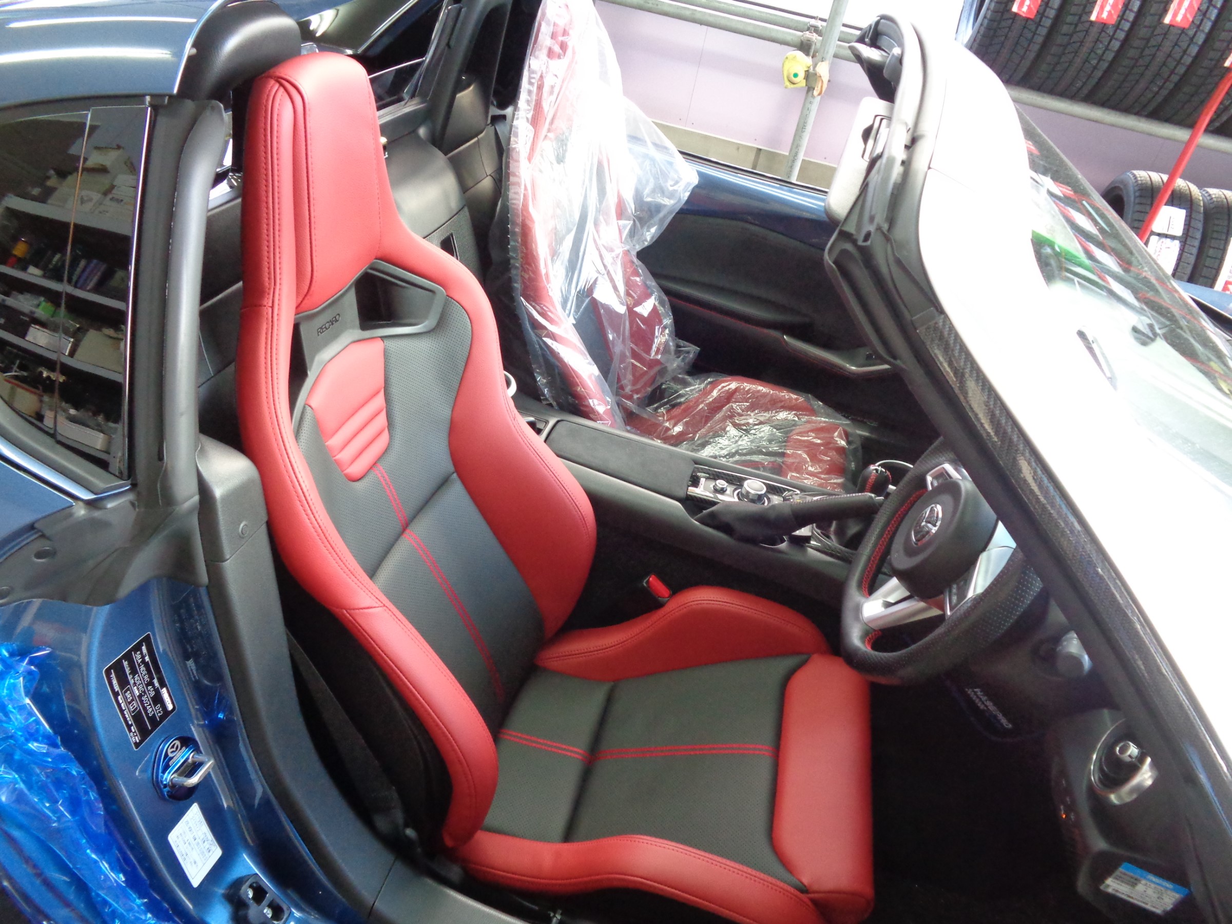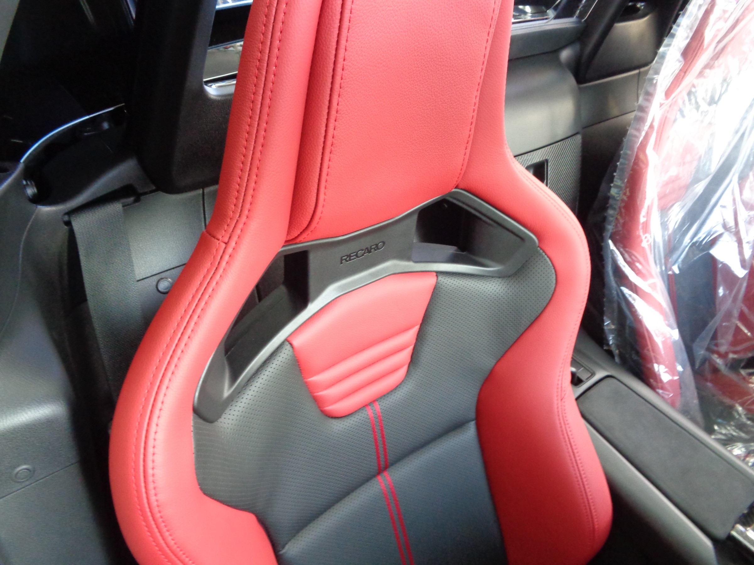 純正で赤パイピングのレカロシートが付いてます↓