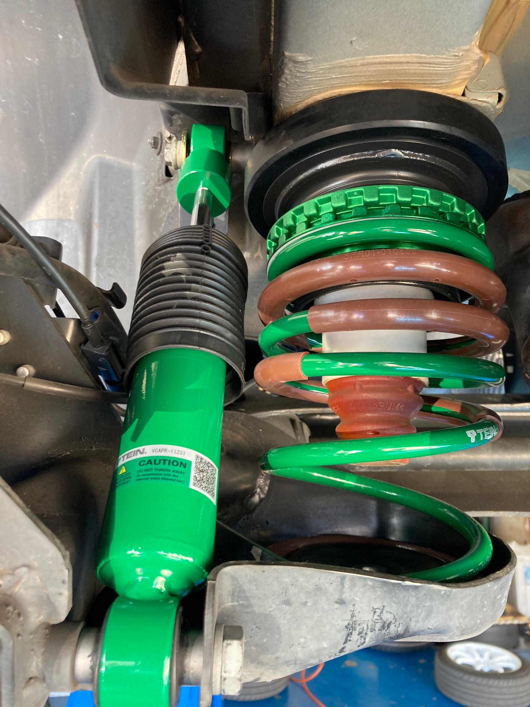 アバルト595にテインの車高調。