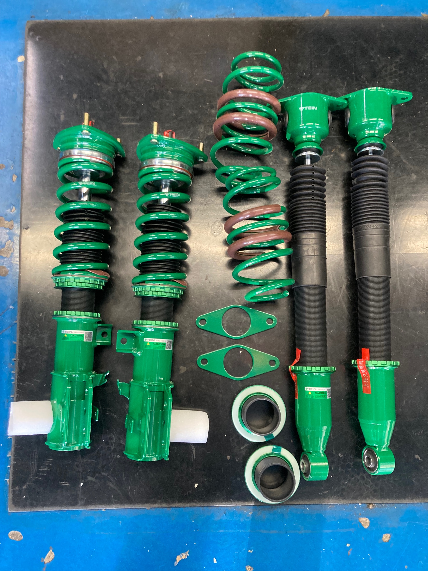 まずは基本設定で取り付けです。各メーカー値上げをしてテインも以前よりは価格が上がっていますが、それでも前後のマウントも付いて、減衰力調整も出来て安心の国産。割安感があります。