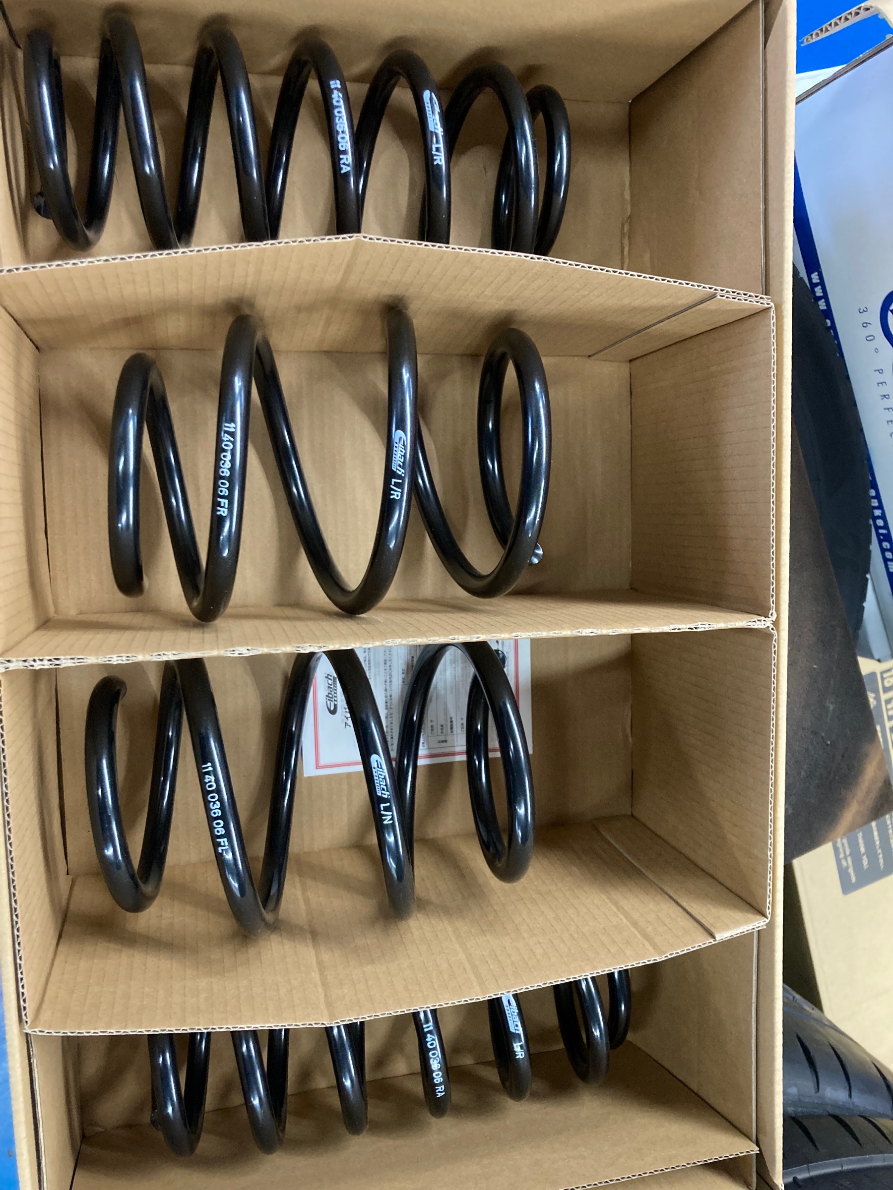 さりげなく下げたい。そんなお客様が選んだのはアイバッハのローダウンスプリングです。2センチ程下がるようです。
