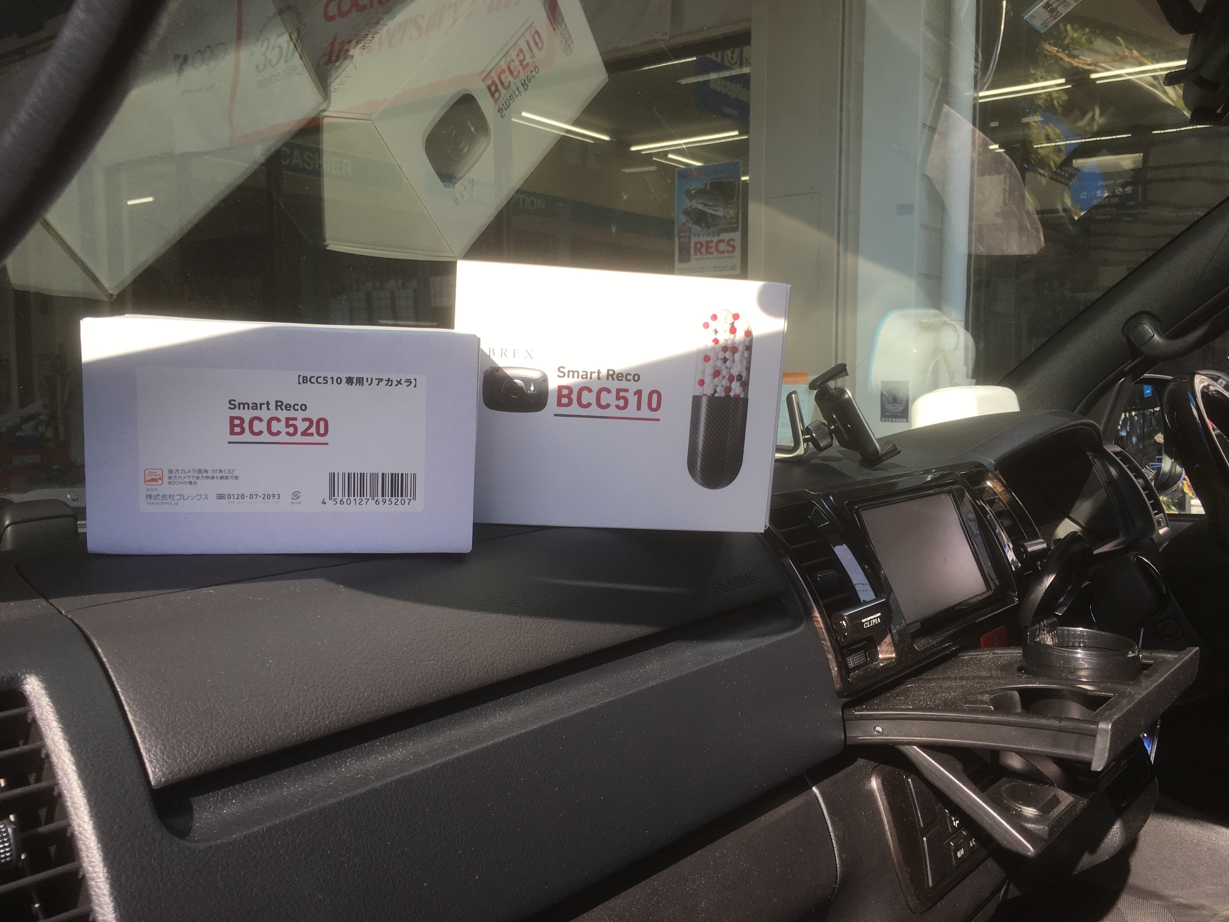 そして、ドラレコの取り付け。BREXのsmart Recoです。勿論リアも装着。