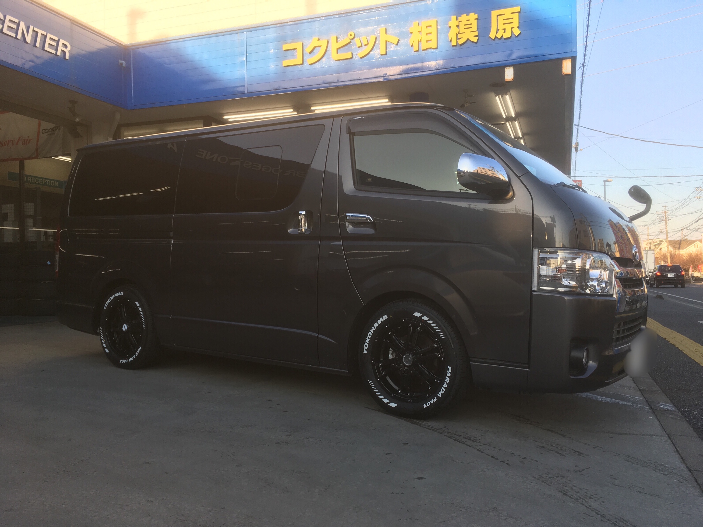 ハイエースに足回りパーツなどを取り付けです。