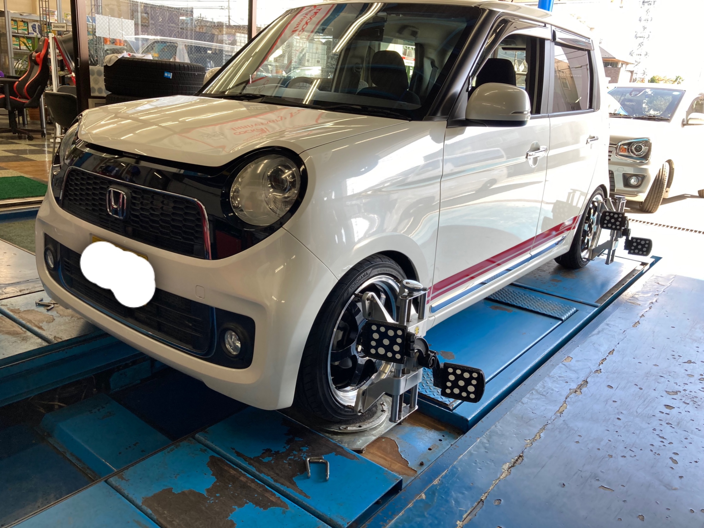 車高調を付けたところ運転しにくくなってしまったとご連絡いただき、アライメント作業することに。