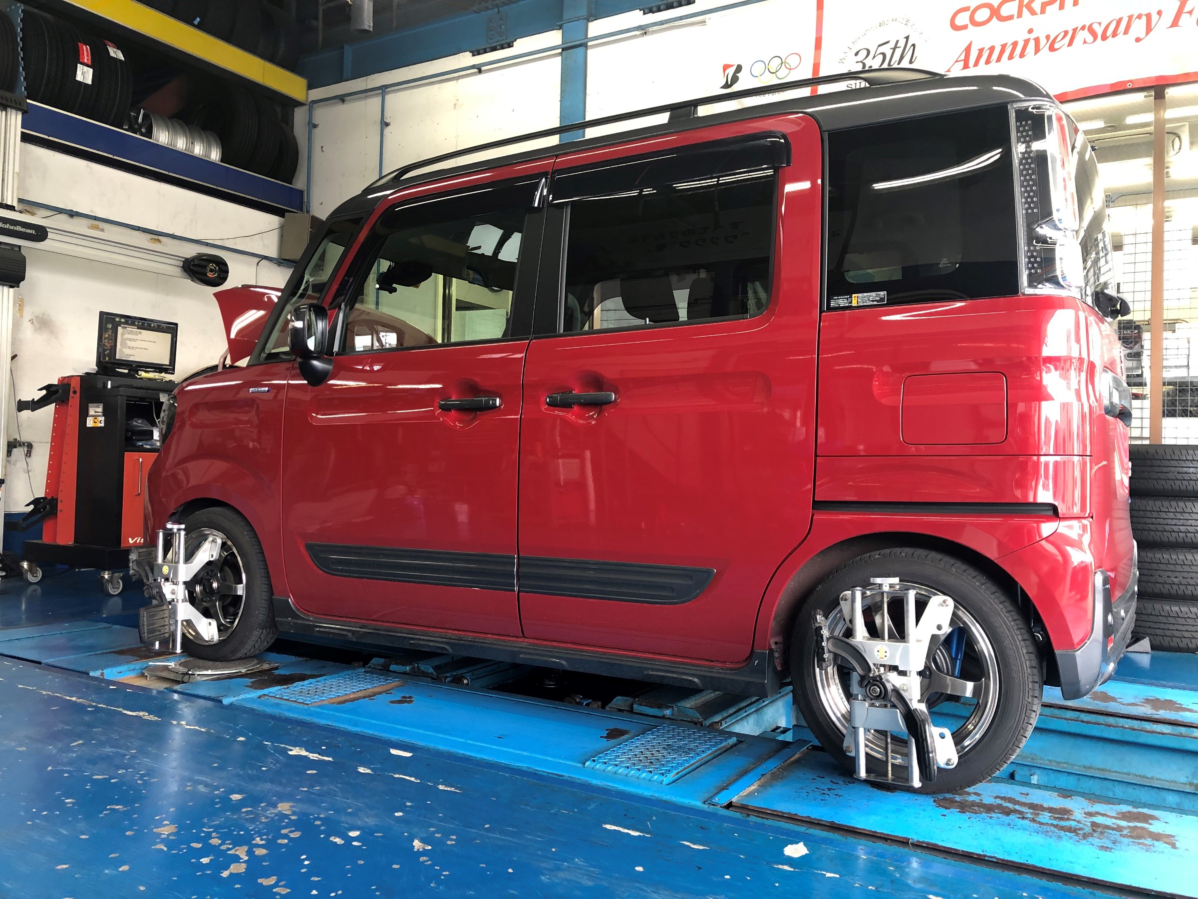 以前クスコ車高調を取り付けさせていただいたお客様で、慣らし運転が終わったとご連絡いただきましたのでアライメントを実施いたしました。