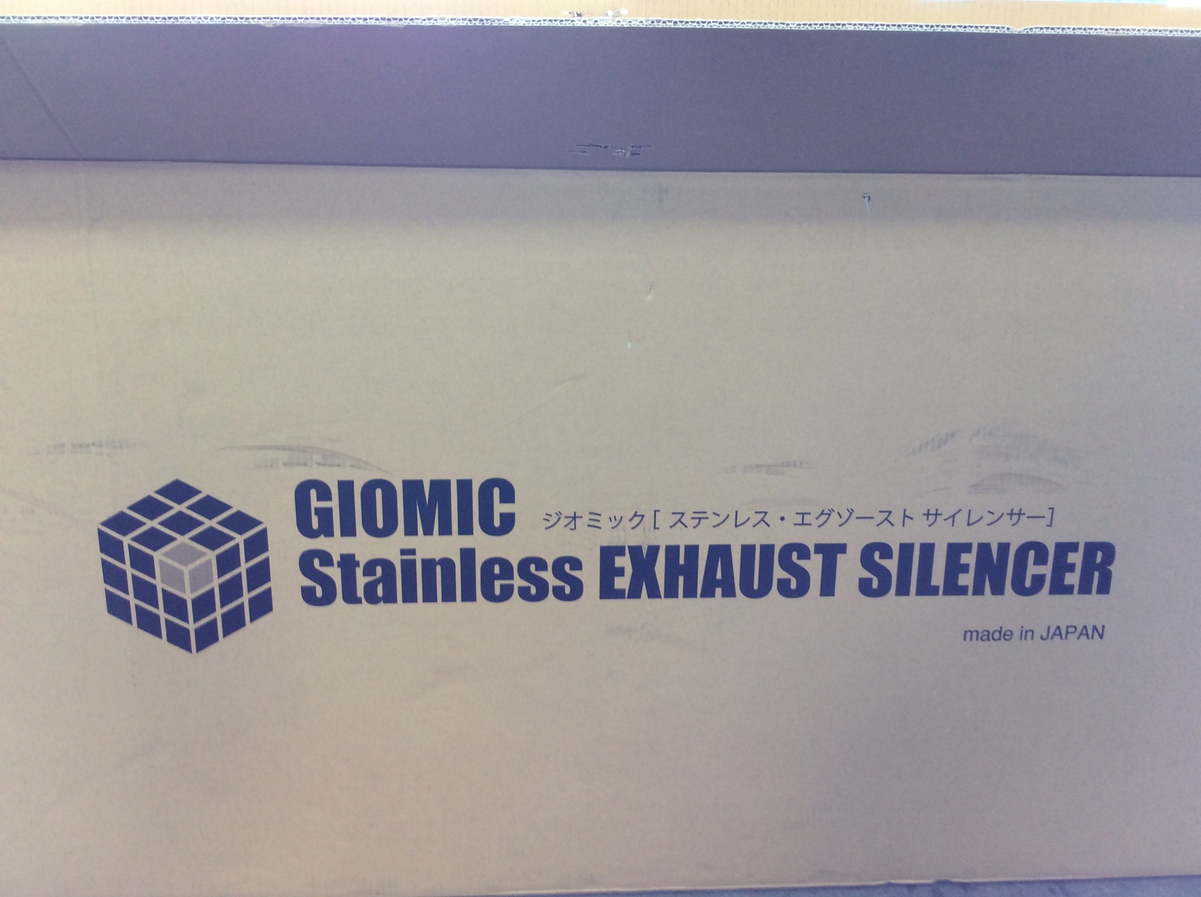コチラの純正のマフラーからジオミックさんのステンレス・エグゾースト・サイレンサーに交換です