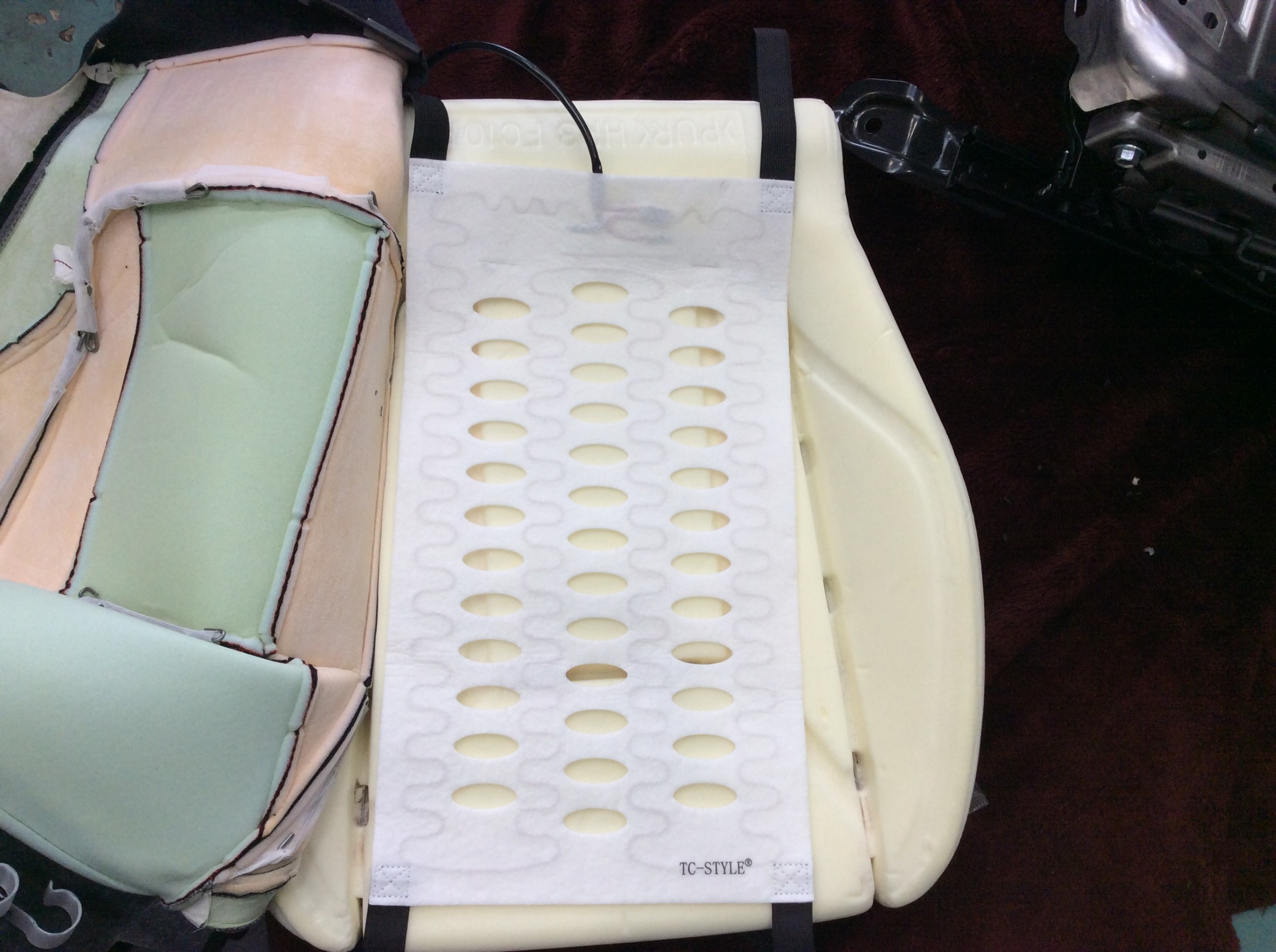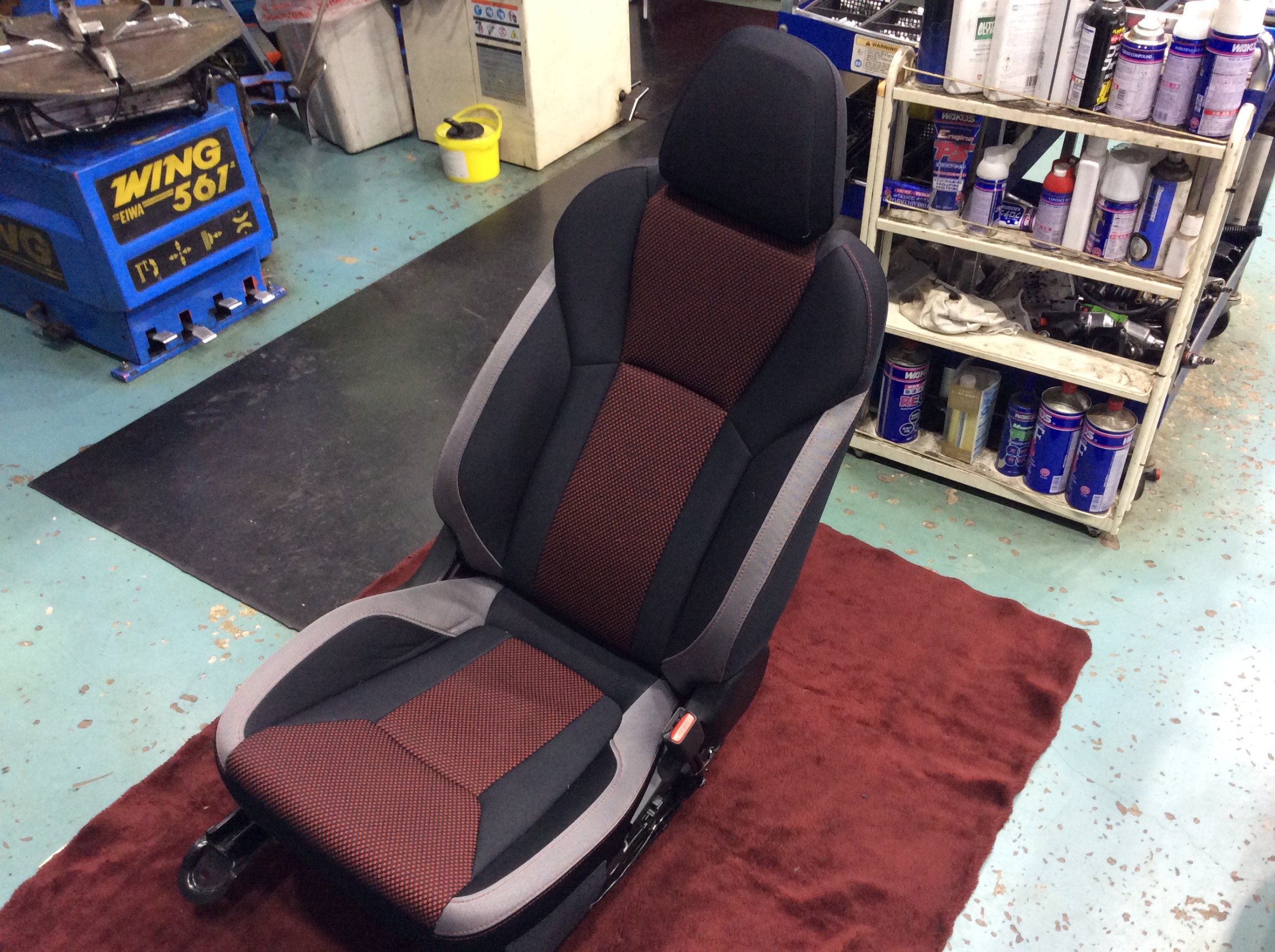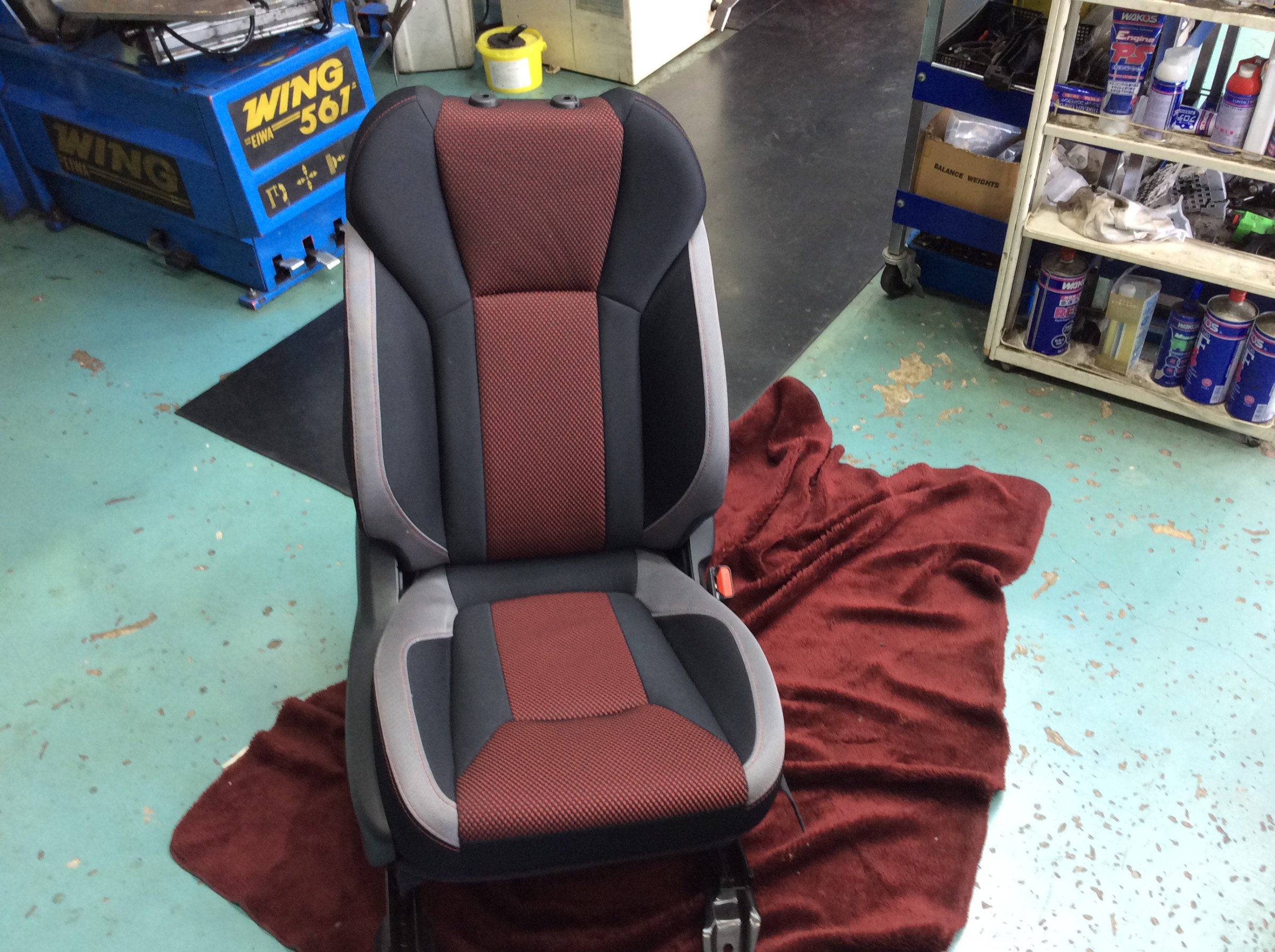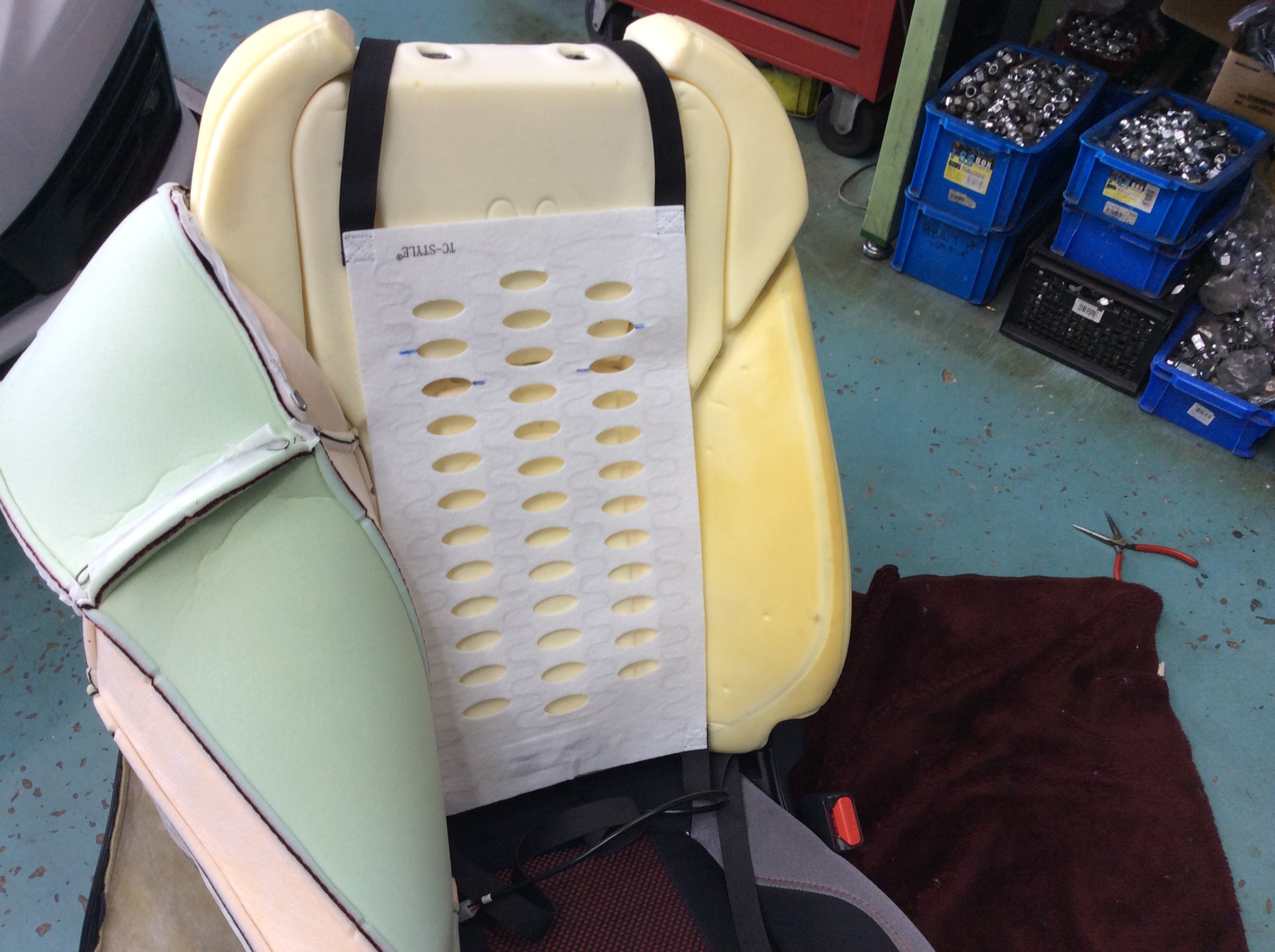 シートを車から外し、降ろしての作業です。