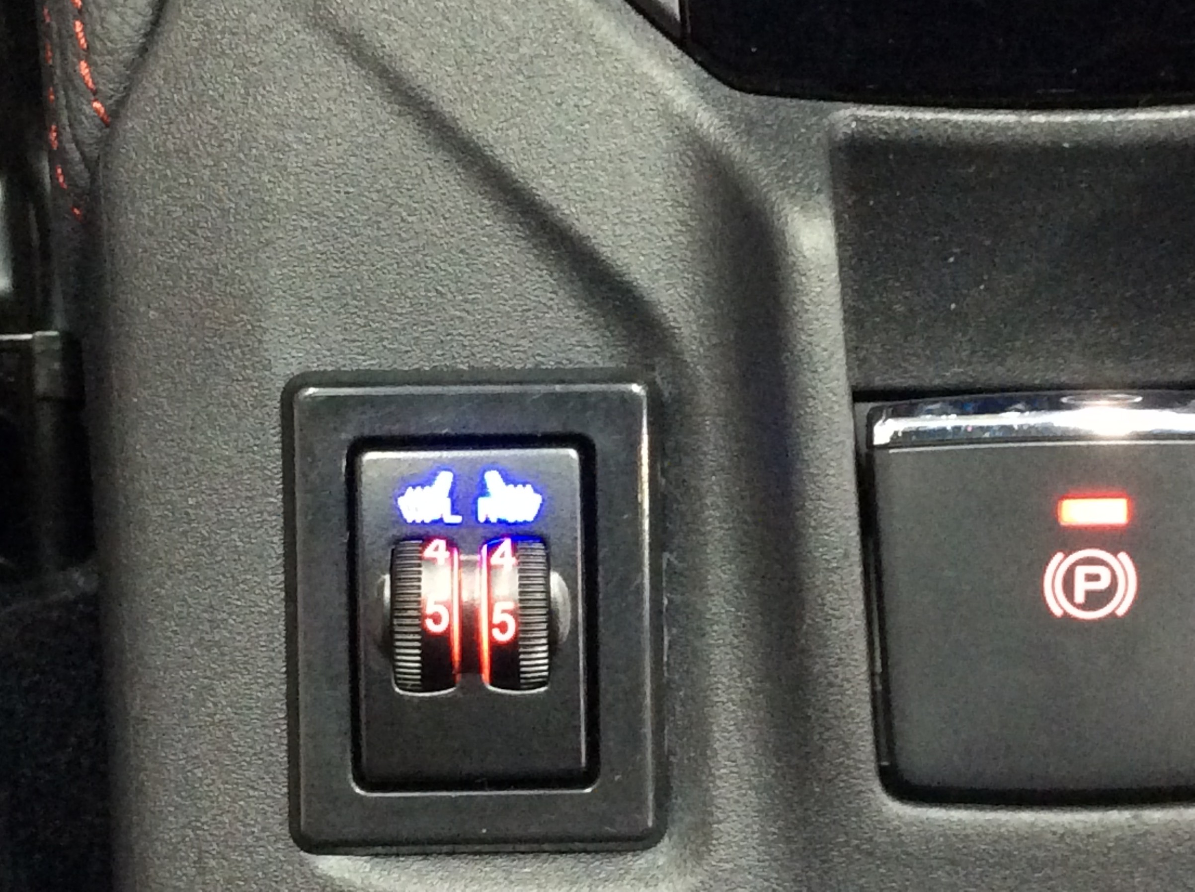 イルミと同時にシートヒーターのイラストがブルーに光ります。ダイヤルを回せばレッドに光り、温度調整がわかる様になります。