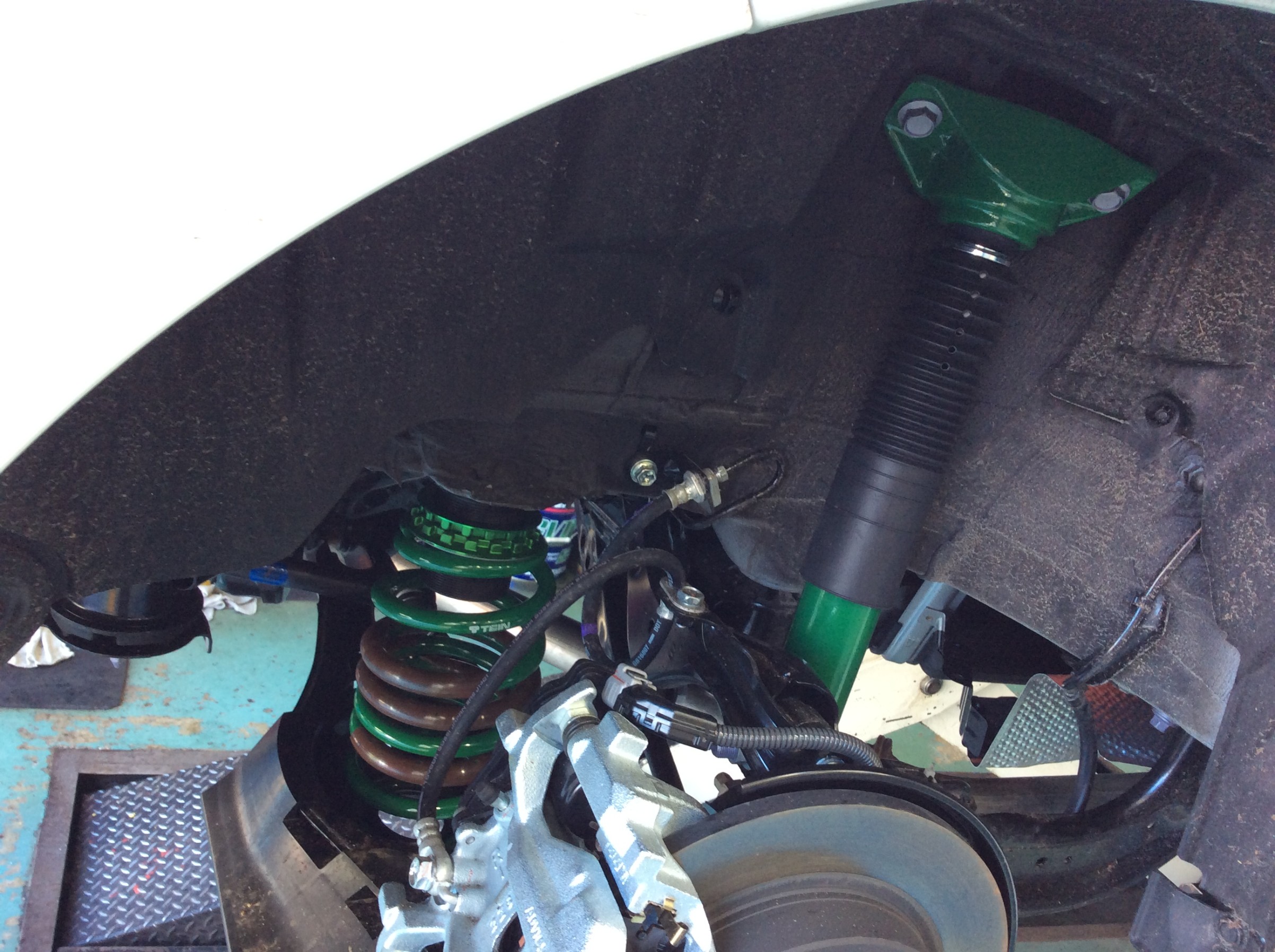 せっかくホイールを交換するので、スタイル的にも良い感じに仕上げたく、テインさんのFLEX Zを装着して車高も変更いたしました。