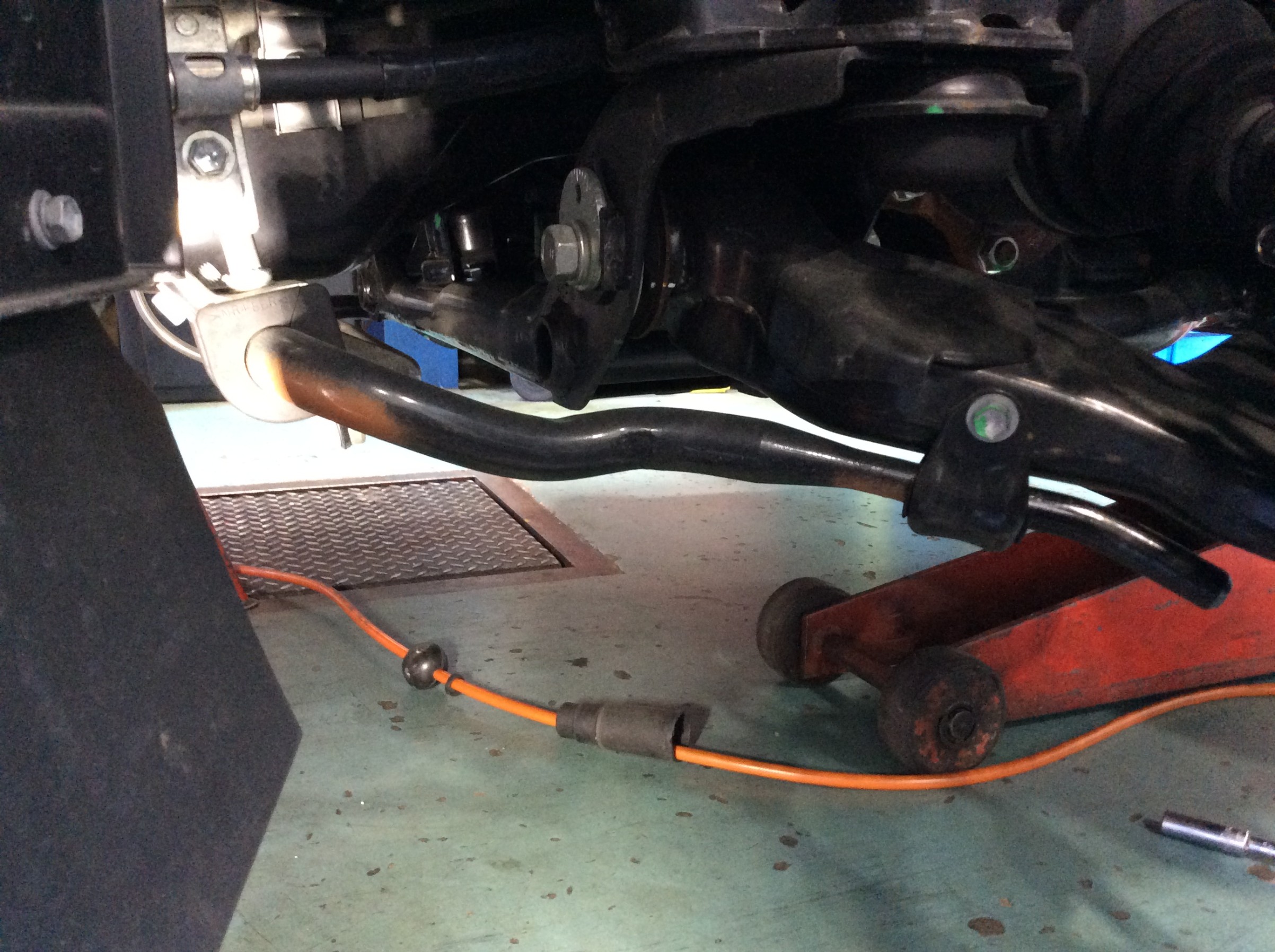 左右の揺れが有るとの事で、コレを解消する為にユーアイビークルさんのフロントスタビライザーに交換しました。