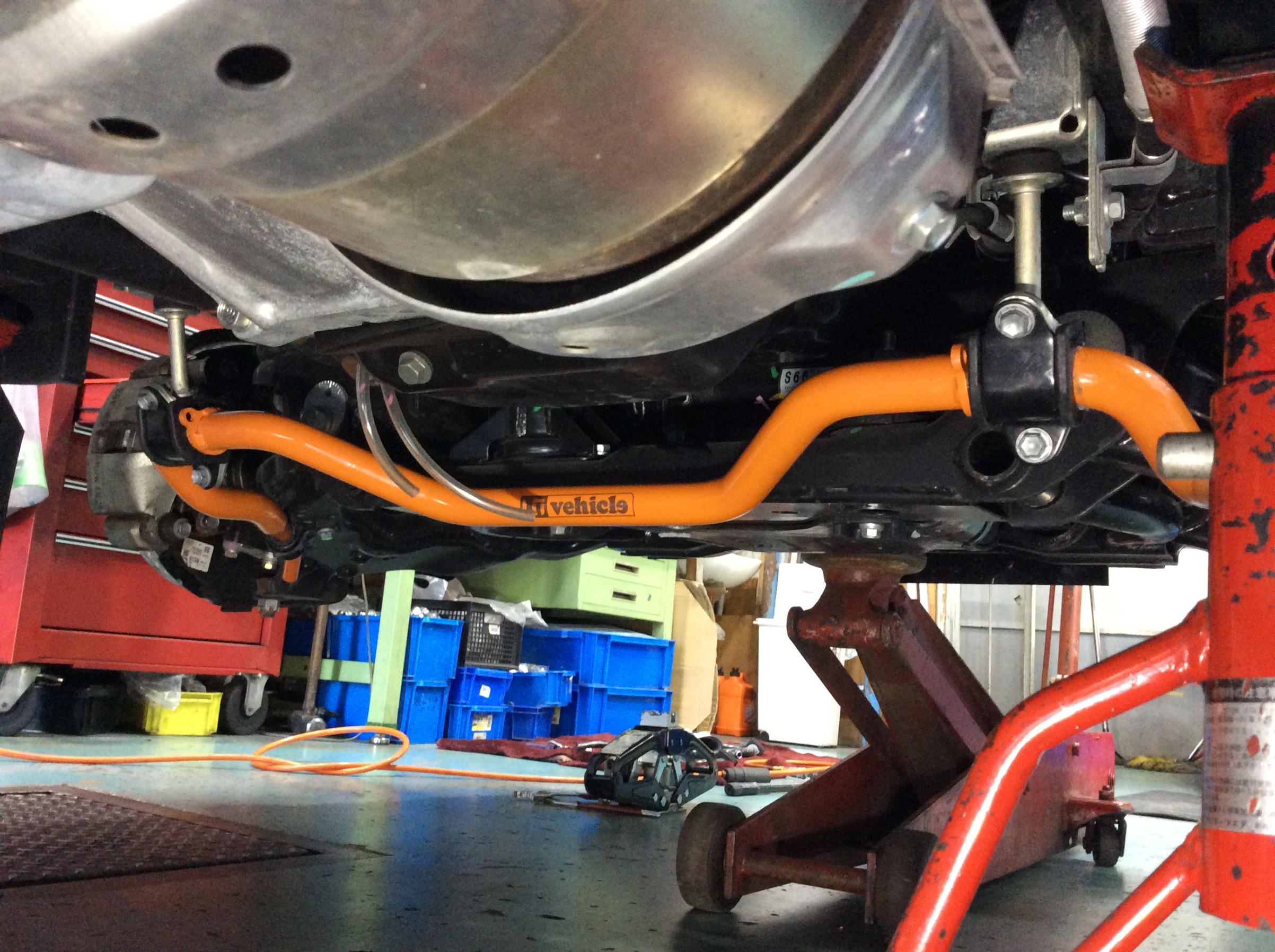 更に、リアには元々付いていないのですが、追加でユーアイビークルさんのリアスタビライザーを取り付けいたしました。