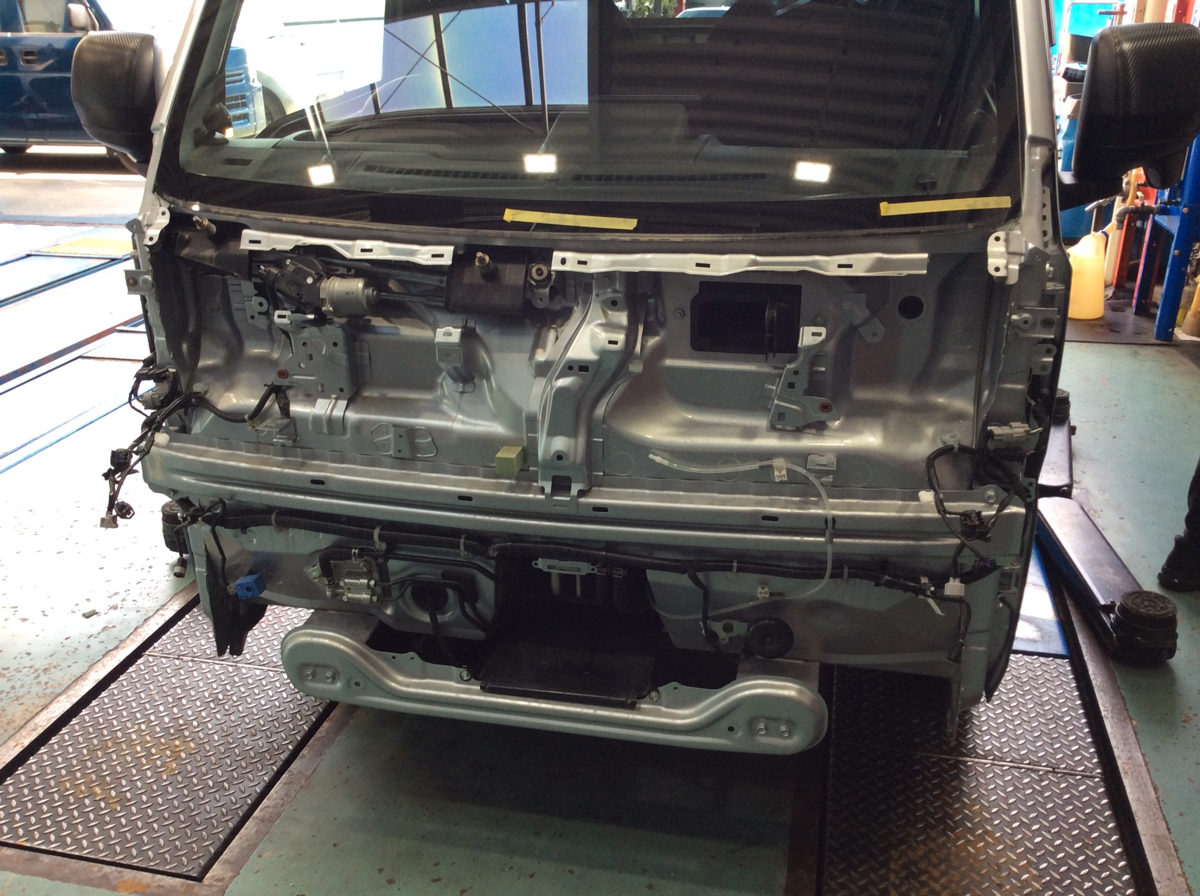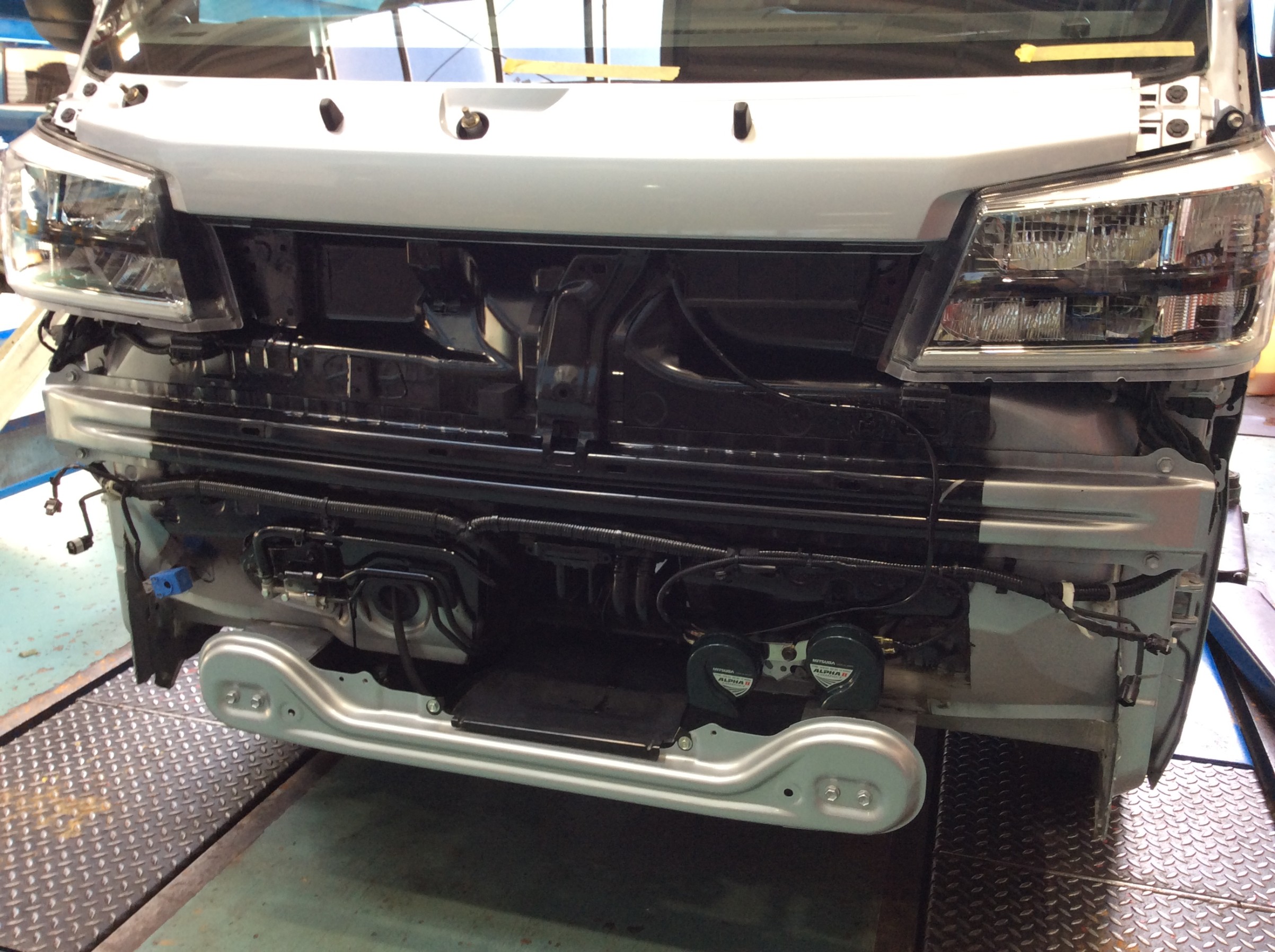 交換に当たりフロントのバンパーをはじめ、顔面を取り外します。