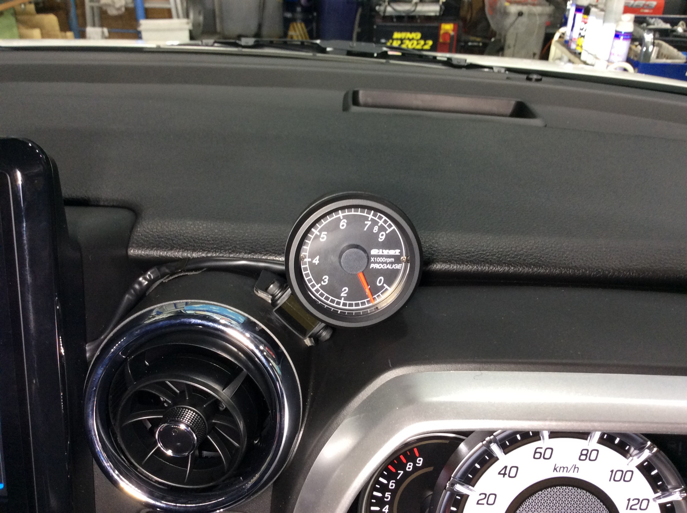 メーターは純正のメーター横エアコン吹き出し口上に貼り付けさせていただきました。