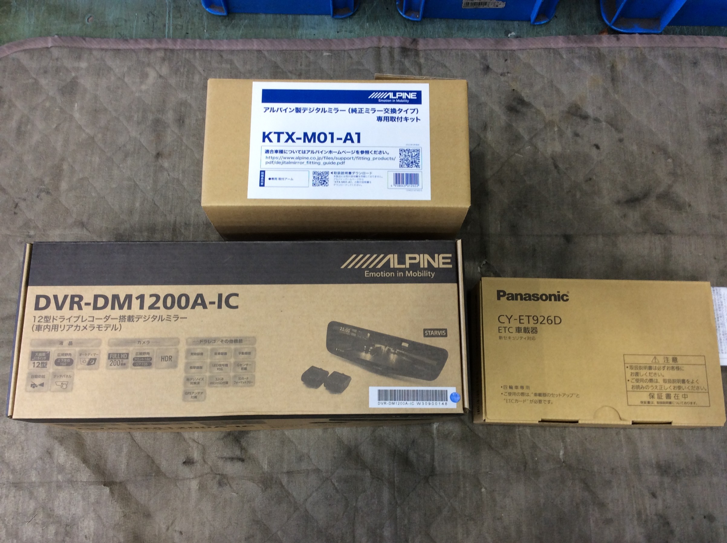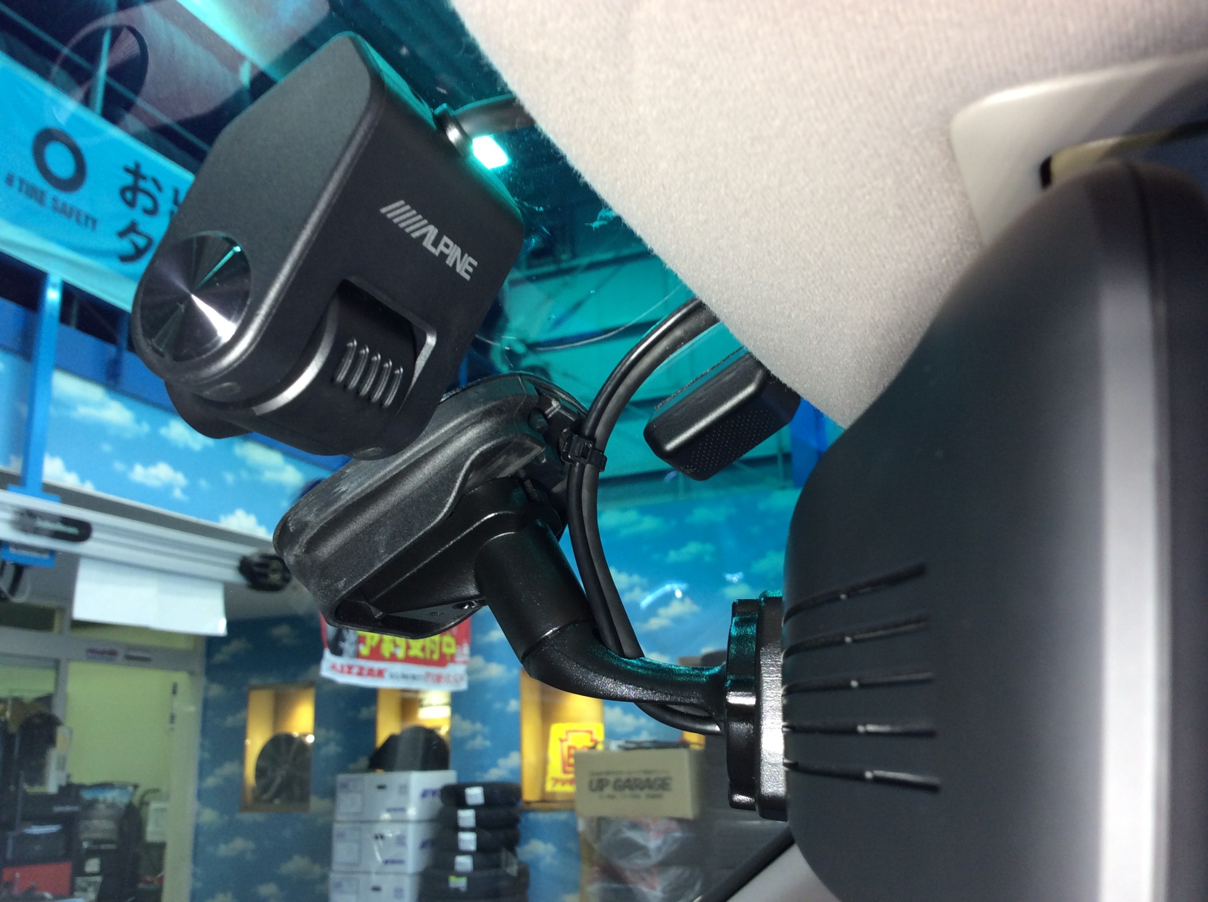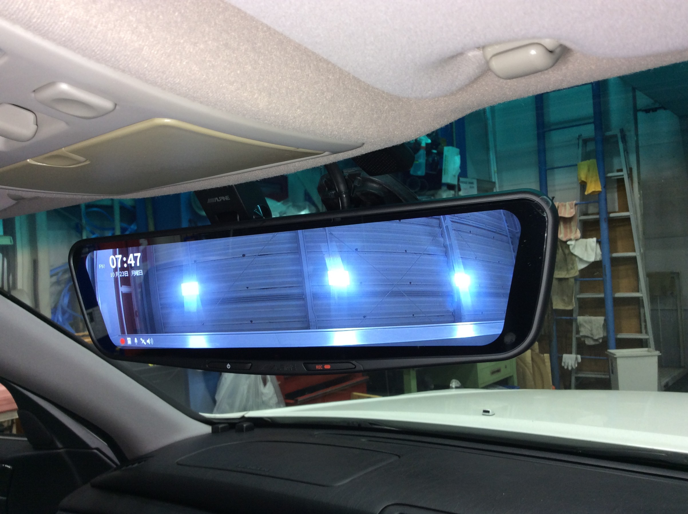 ドラレコを取り付けるなら、今や定番のデジタルインナーミラータイプでしょうという事で、アルパインさんのDVR-DM1200A-ICを取り付ける事となりました(純正ミラーに被せタイプはダメとの事で、純正交換タイプを取付ました)。