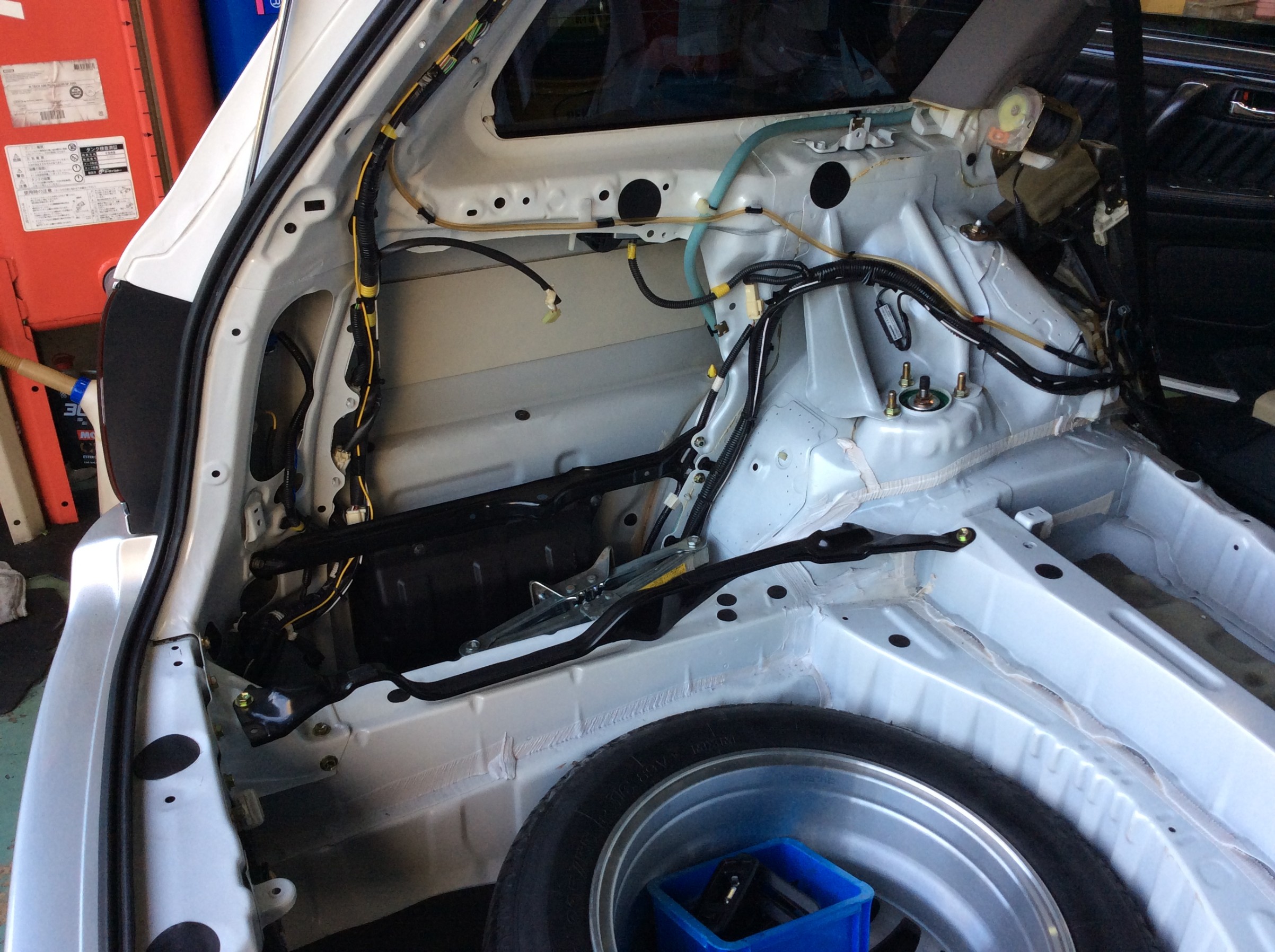 リアカメラの配線を通す為、数年ぶりにリアの内貼りを外す事に・・・