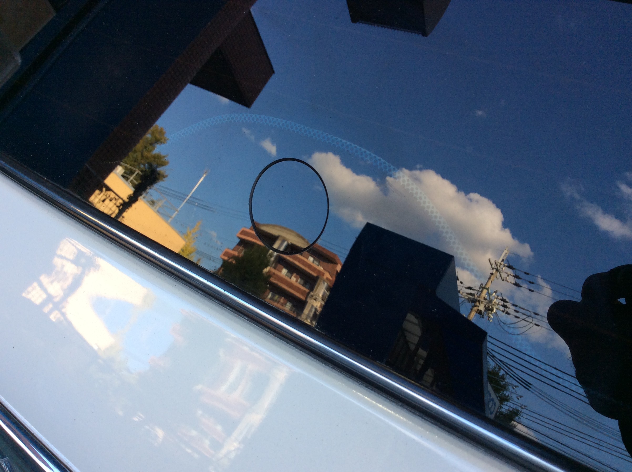 通常、両面テープのみで貼り付けるだけなのですが、それではとっても不安ですのでお世話になっていますガラス屋さんにお願いして一生取れなくても良いのでバチバチに貼り付けていただきました。