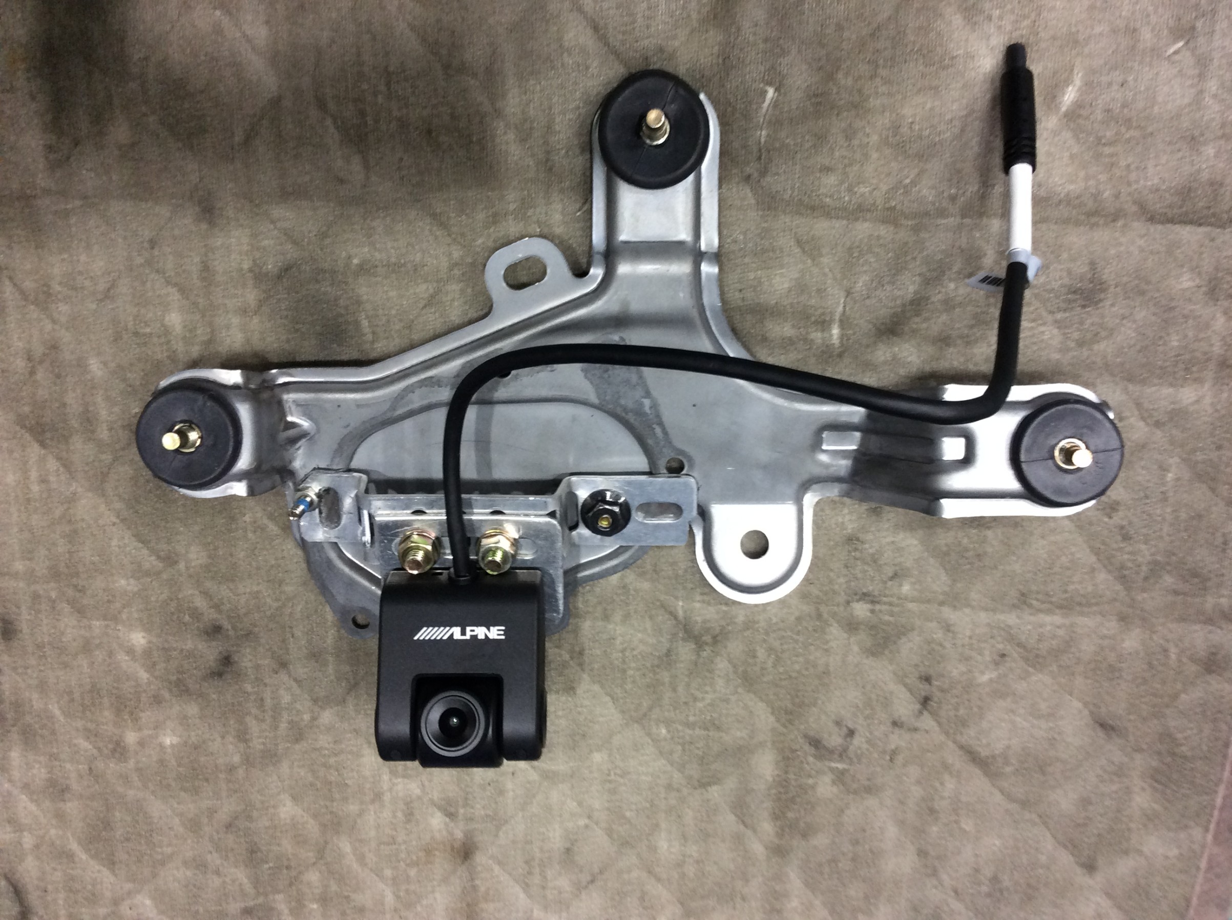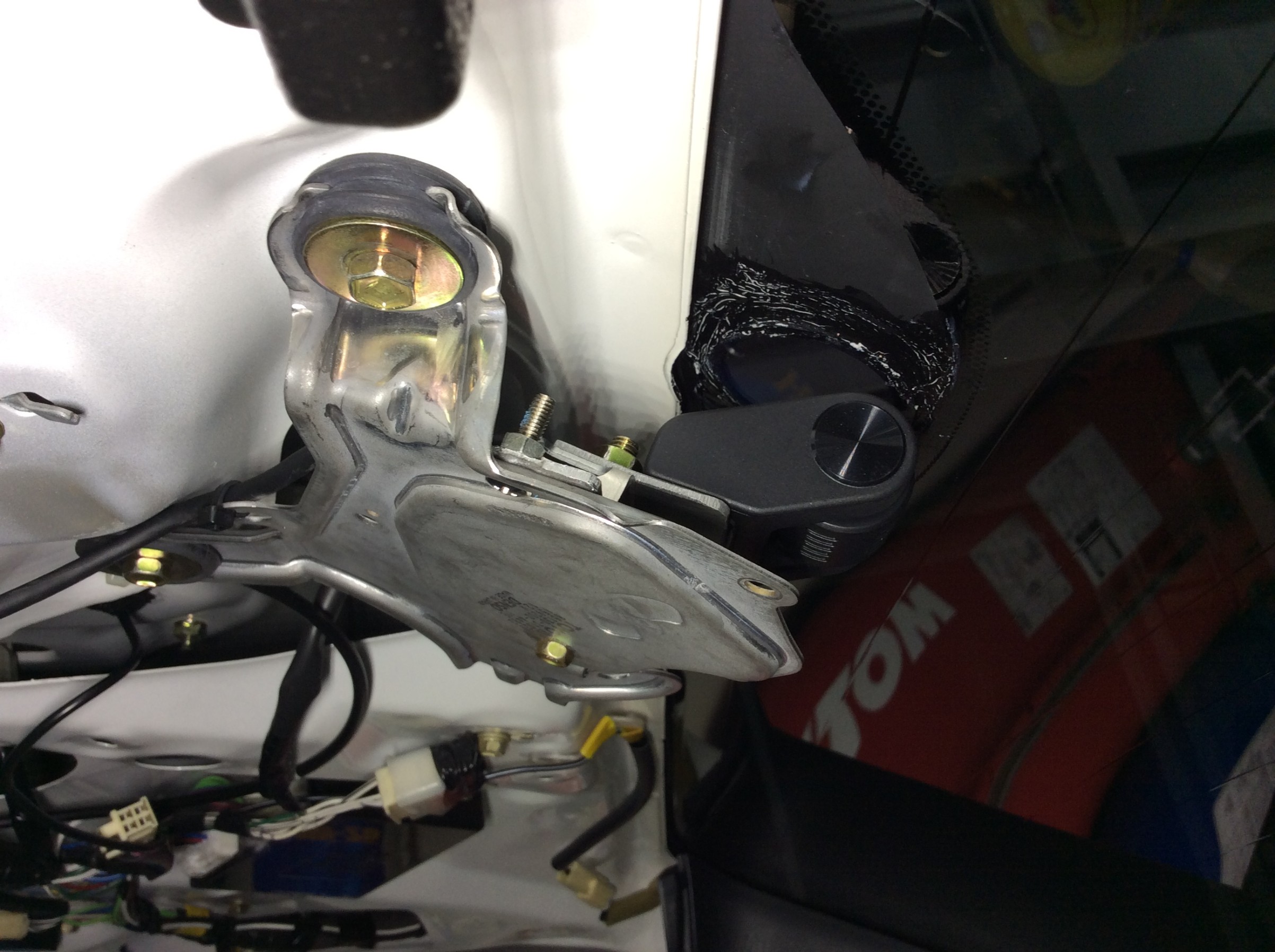 固定にはリアワイパーのモーターのカバーを再利用して、それにステーなどを取付角度を調整してオリジナルで作成。