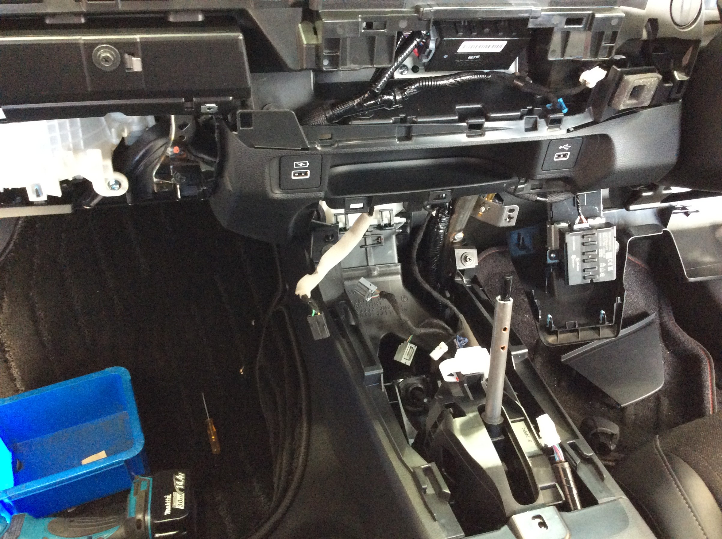 本体の電源をシガーソケットの裏につなぐため、その周辺をバラバラにいたしました。