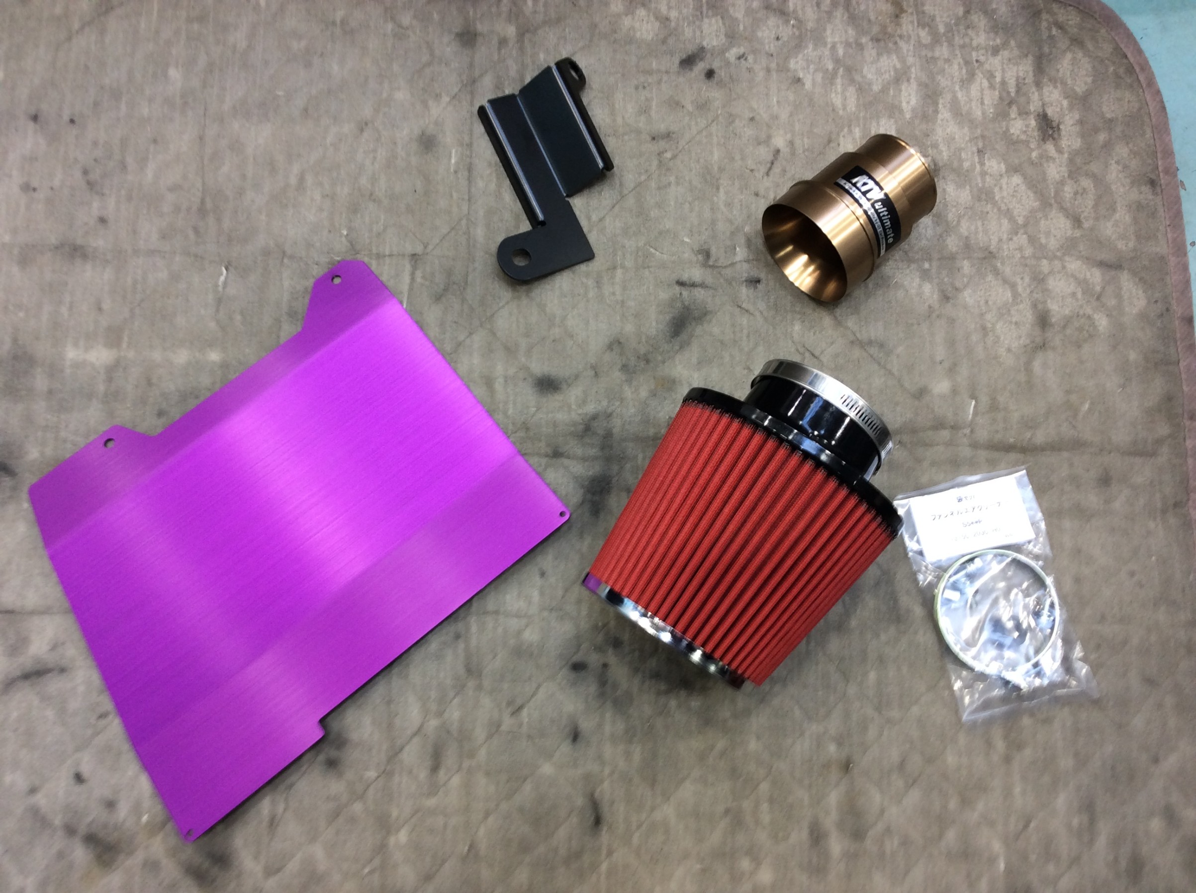 排気側が終わりましたので、続いて吸入側という事でファンネルエアクリーナーをお取り付けしました。