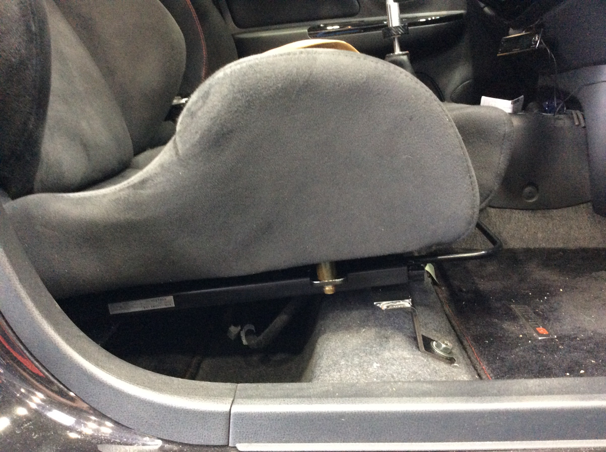 ローポジシートレールと交換するだけでは、希望のポジションより下がり過ぎるとの事で、シートとレールの間にスペーサーをお取り付けしました。