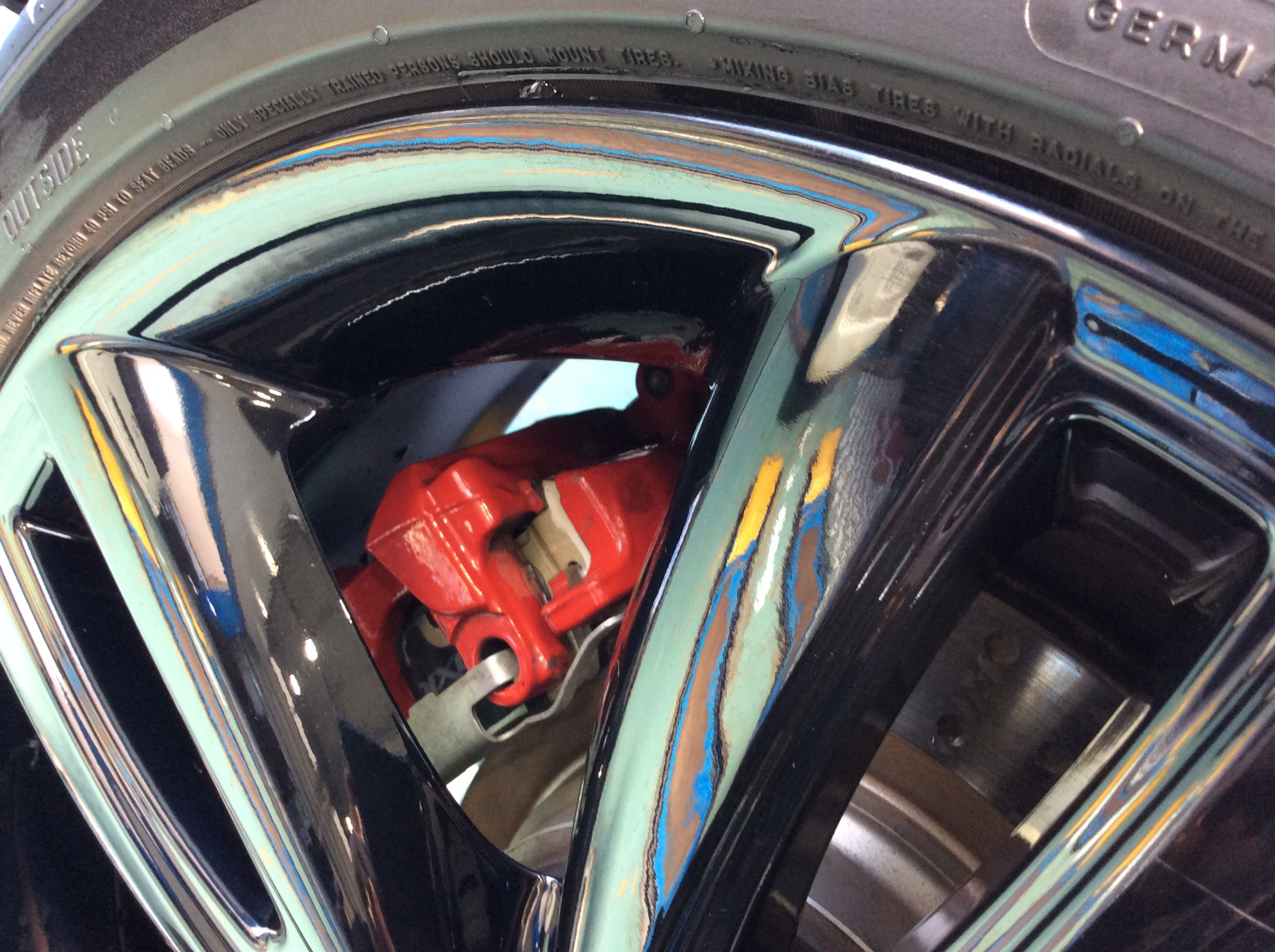 フロントはキャリパーに完全に覆われてしまいますので見え無くなりますが、リアはチラッとだけパッドのゴールドが見えます。