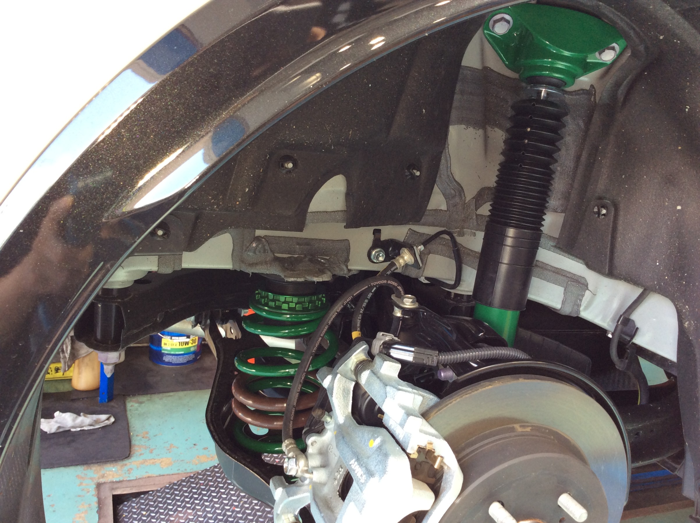 作業、第一弾としてまずはテインさんの車高調「FLEX Z」を取付させていただきました。