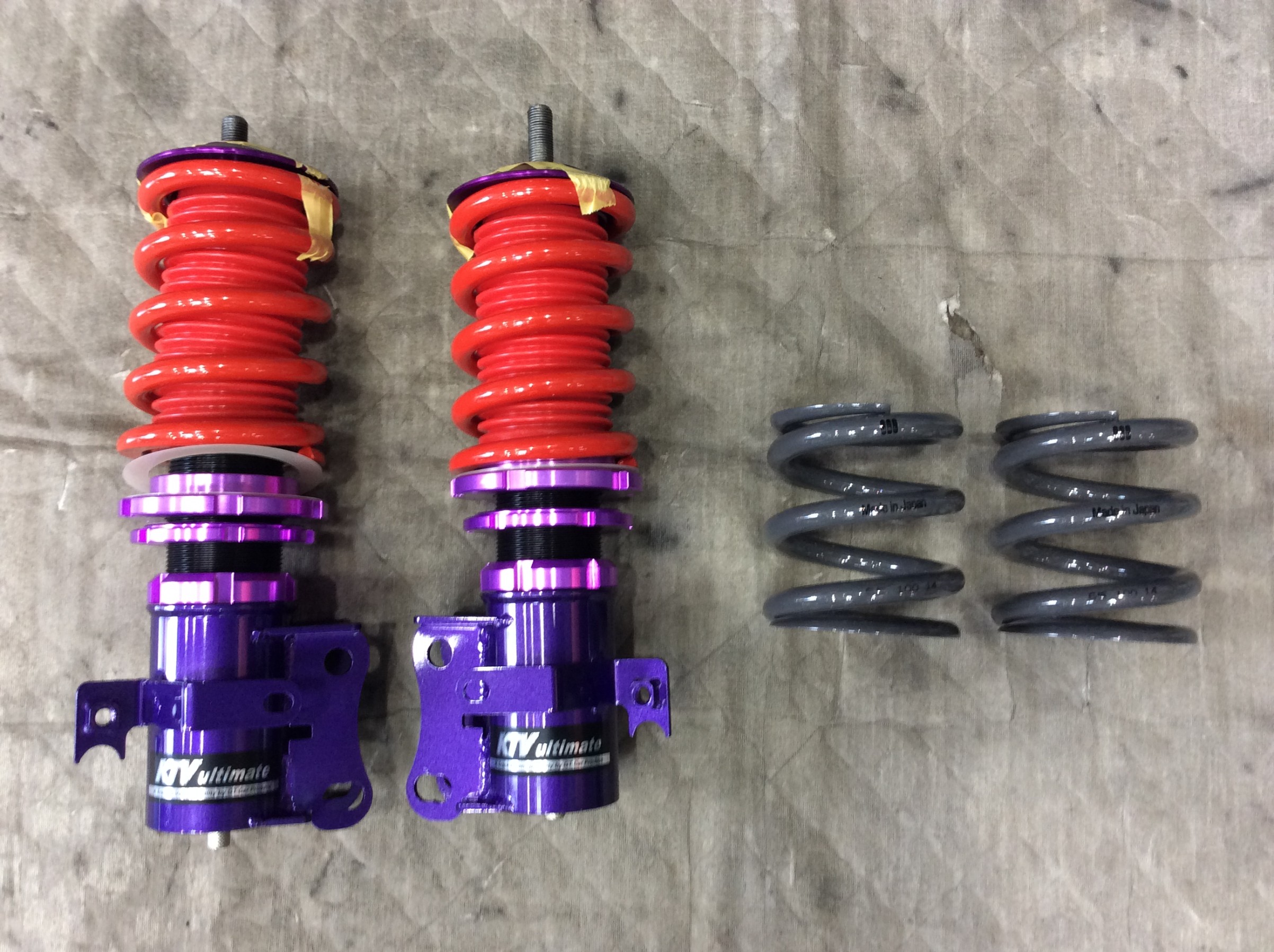車高調本体はGTプロデュースさんのストリートからスーパーローダウン仕様に、それに組み合わせるスプリングはHALスプリングさんの低反発スポーツスプリングです。