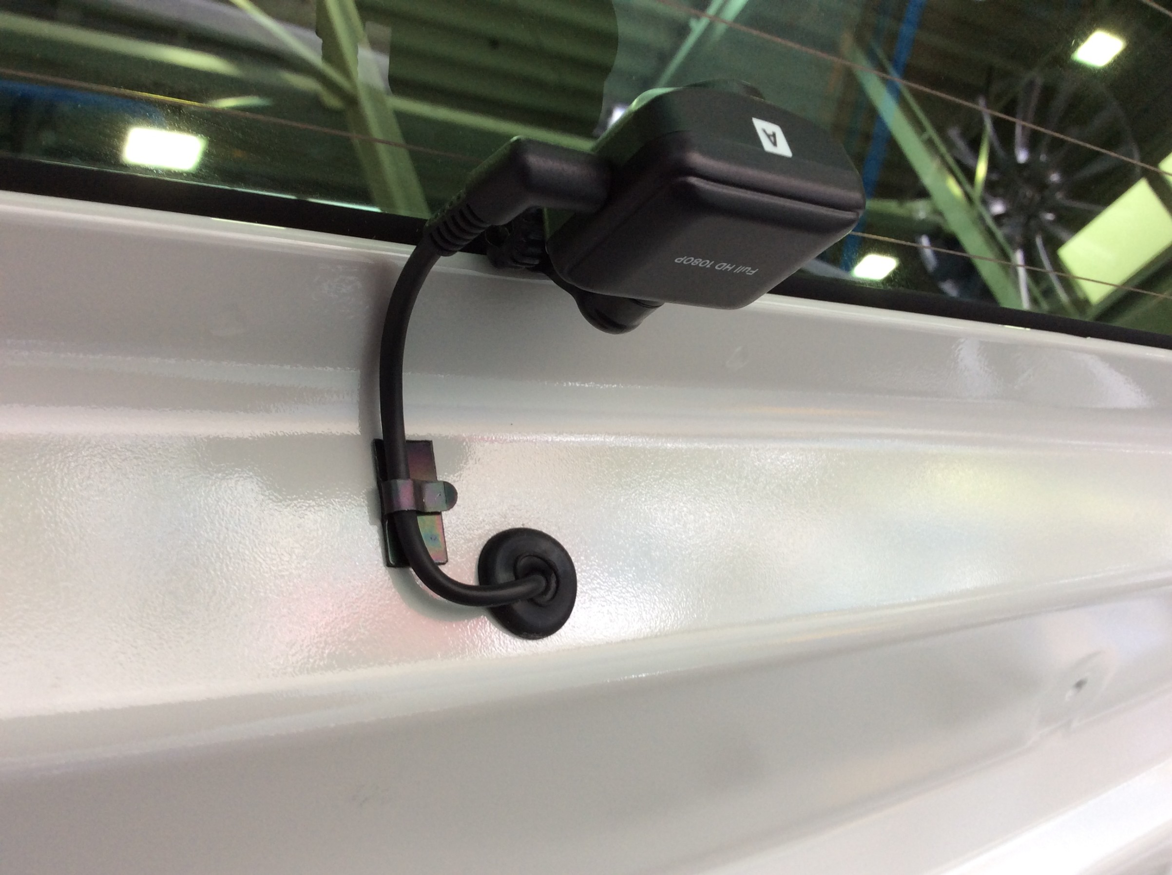 ドラレコのリアカメラはいつもの様にリアガラスの中央上部に貼り付けしましたが