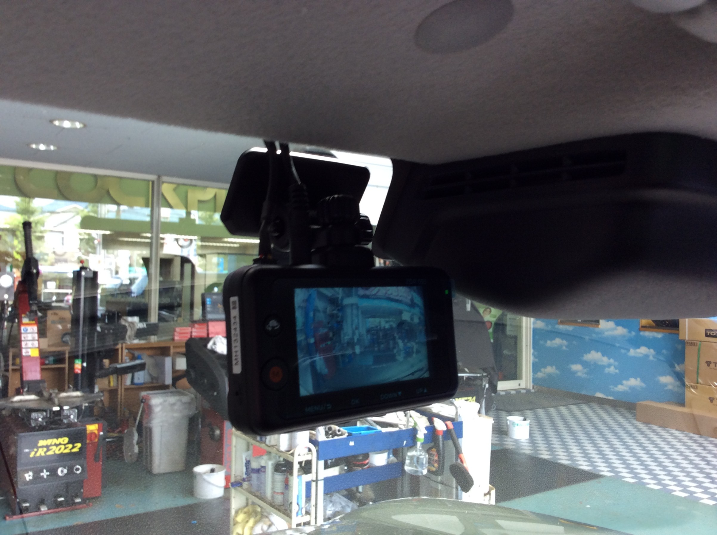 フロントカメラはいつものルームミラー左の一番視界の邪魔にならない場所に取り付け。
