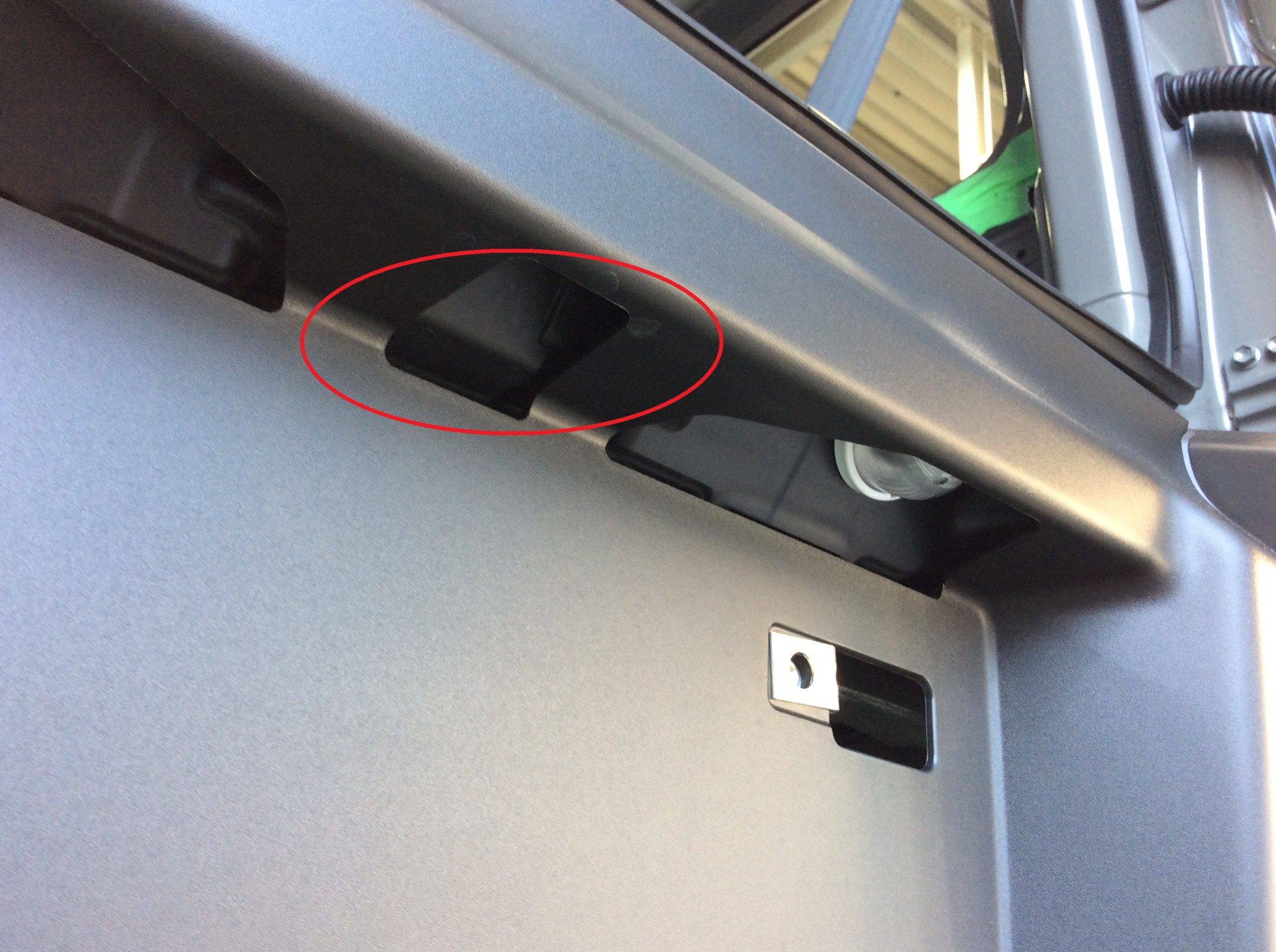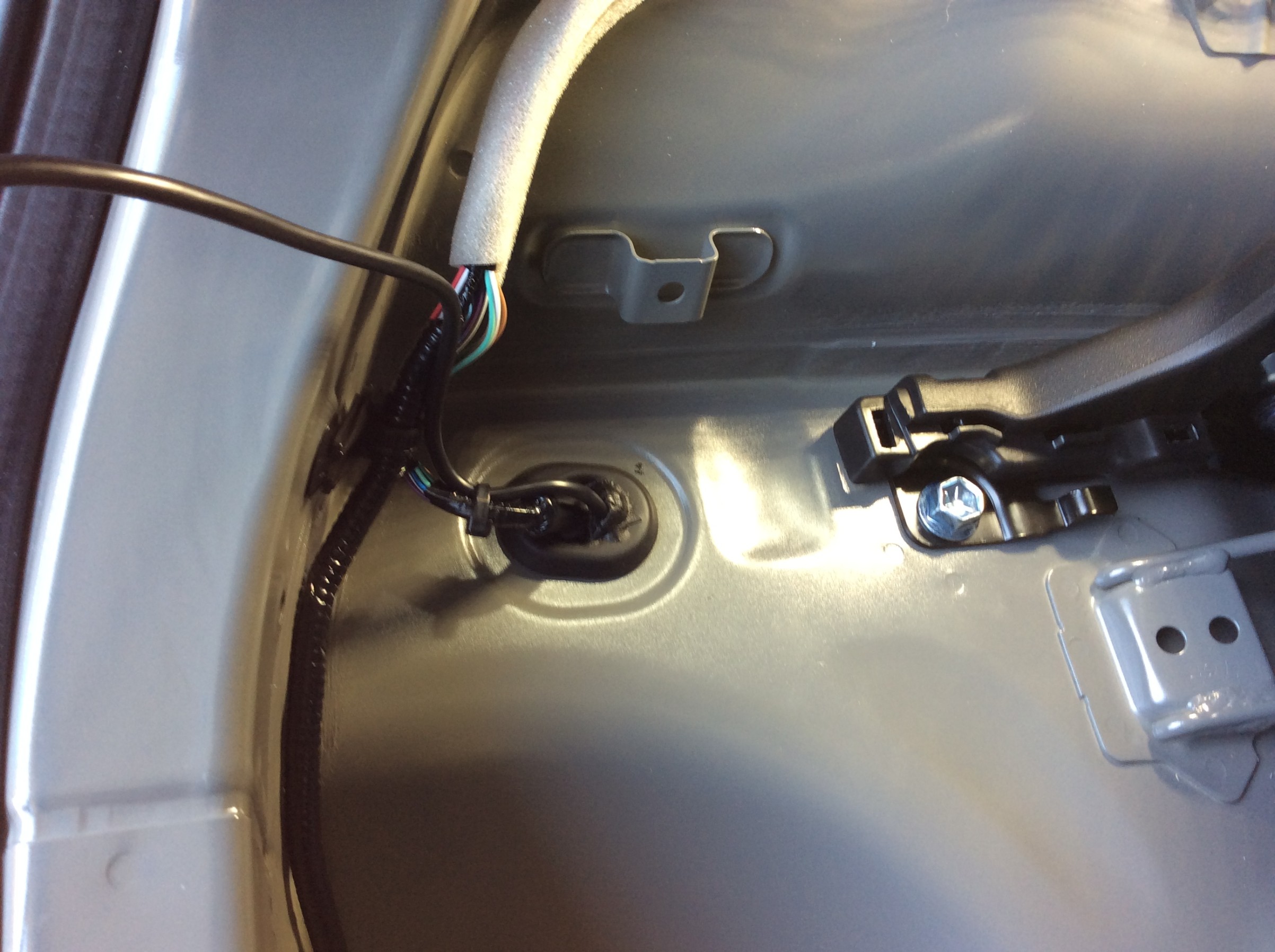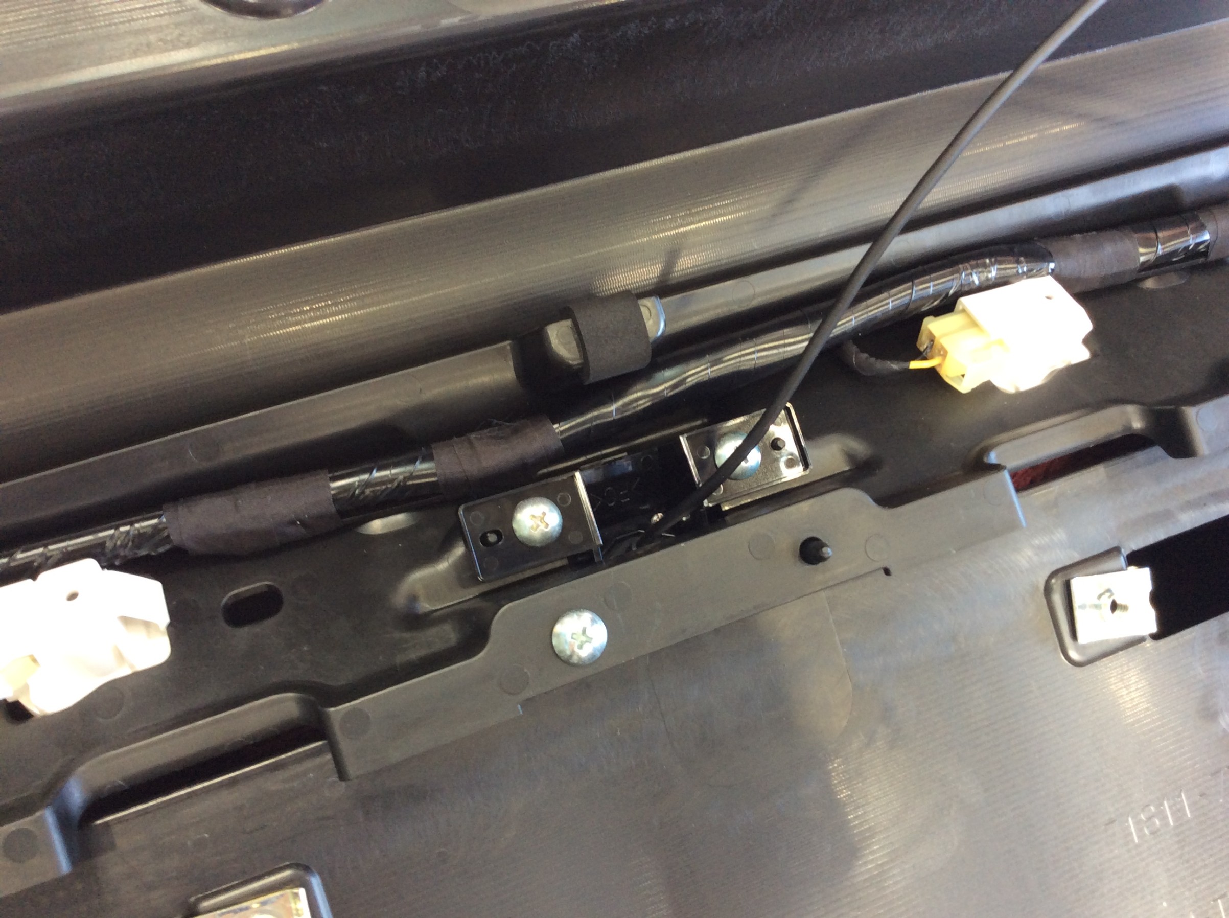 リアカメラはいつもの様に、穴開け加工を行うことをご了承いただき、配線が出来る限り見えない様にお取り付けしました。