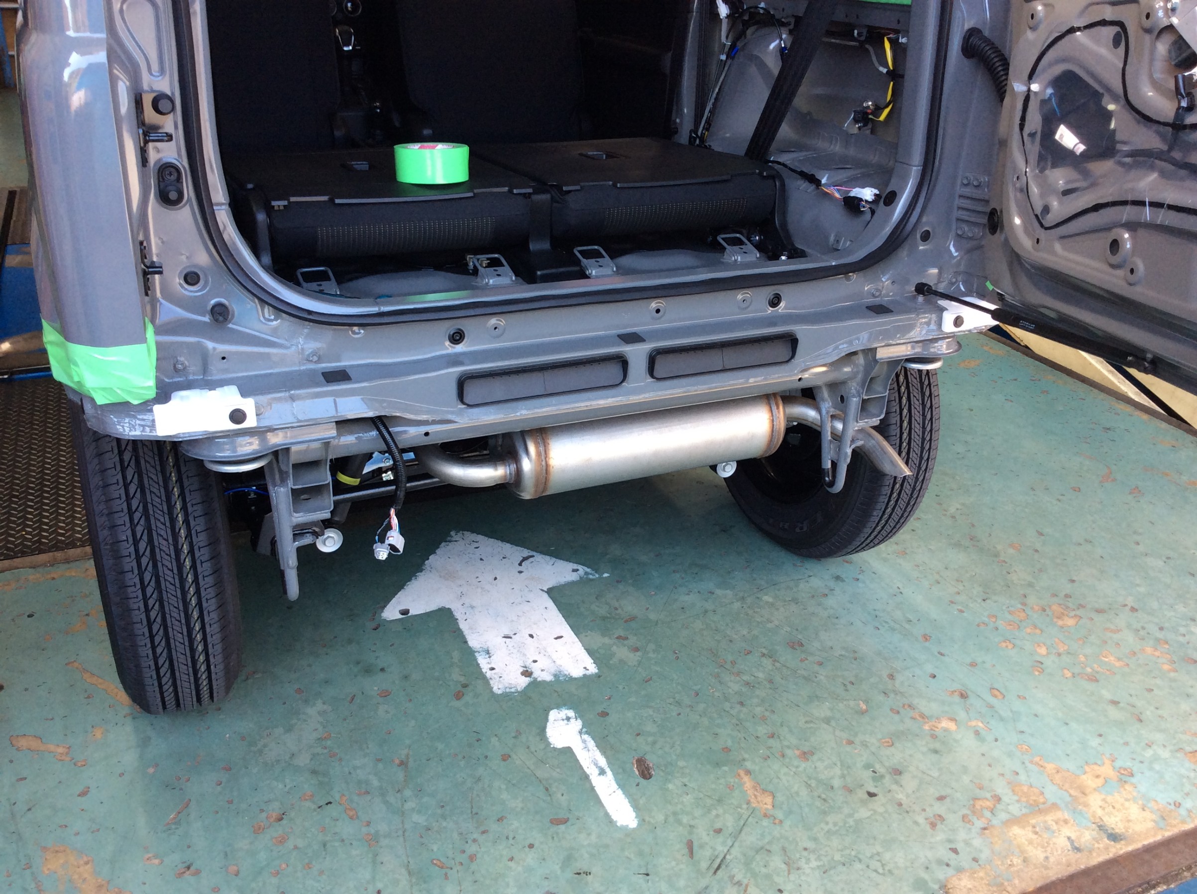 一旦リアバンパーを外して作業します。